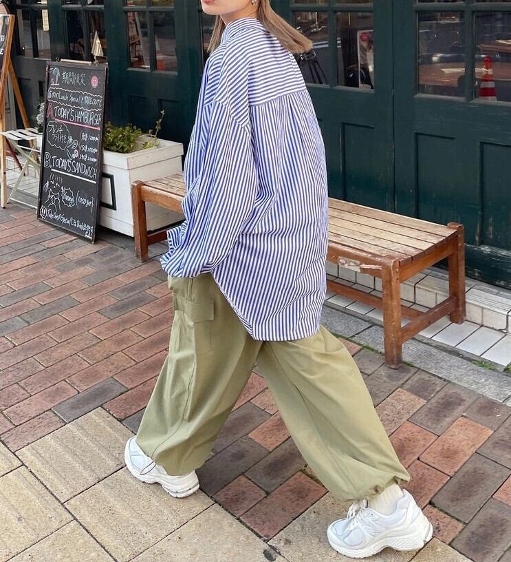 Spot ese 2023春夏新作ラペルニッチストライプルーズ長袖シャツ ロング スプリング 春物 サマー 夏物 cat890934093050