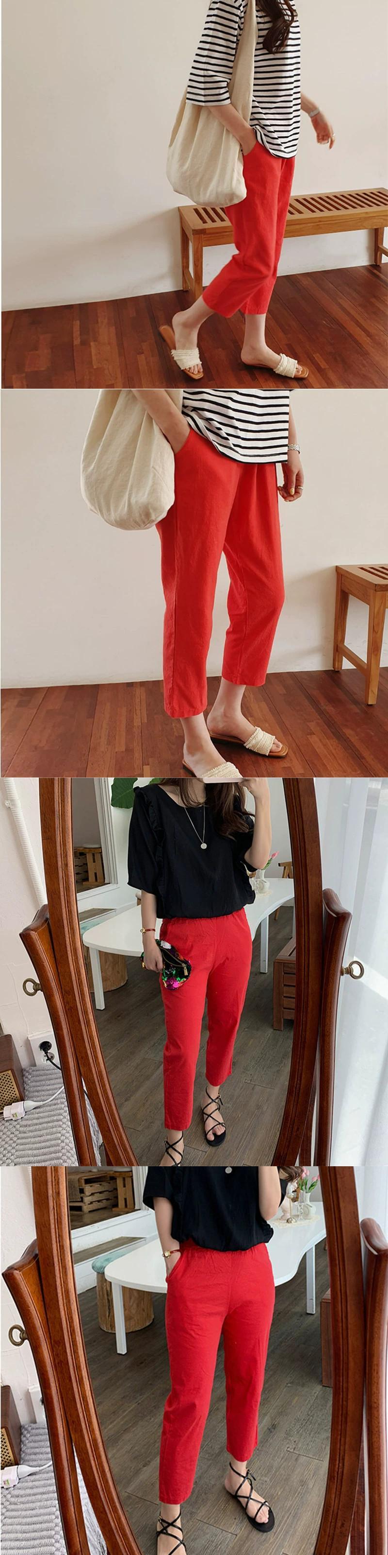 オールマッチ弾性ウエスト痩身大根パンツハーレムパンツレディース 2022 春夏新作カジュアルハイウエスト綿麻クロップドパンツ コットン エラスティック 伸縮 スプリング 春物 サマー 夏物 cat889768071668