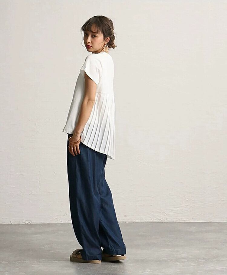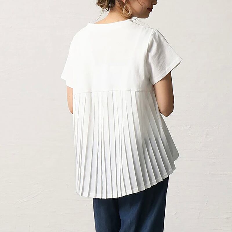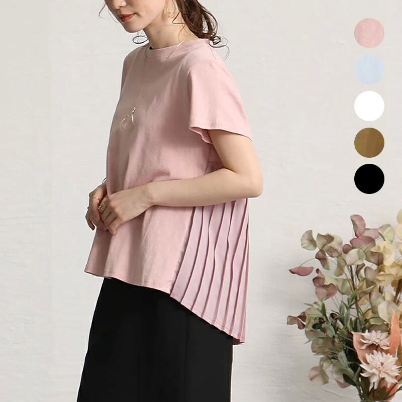 これらと新製品 5 色 2022 レディースラウンドネック Tシャツレディースルーズバックプリーツデザインセンスルーズドールシャツトップ Oネック cat863186389813