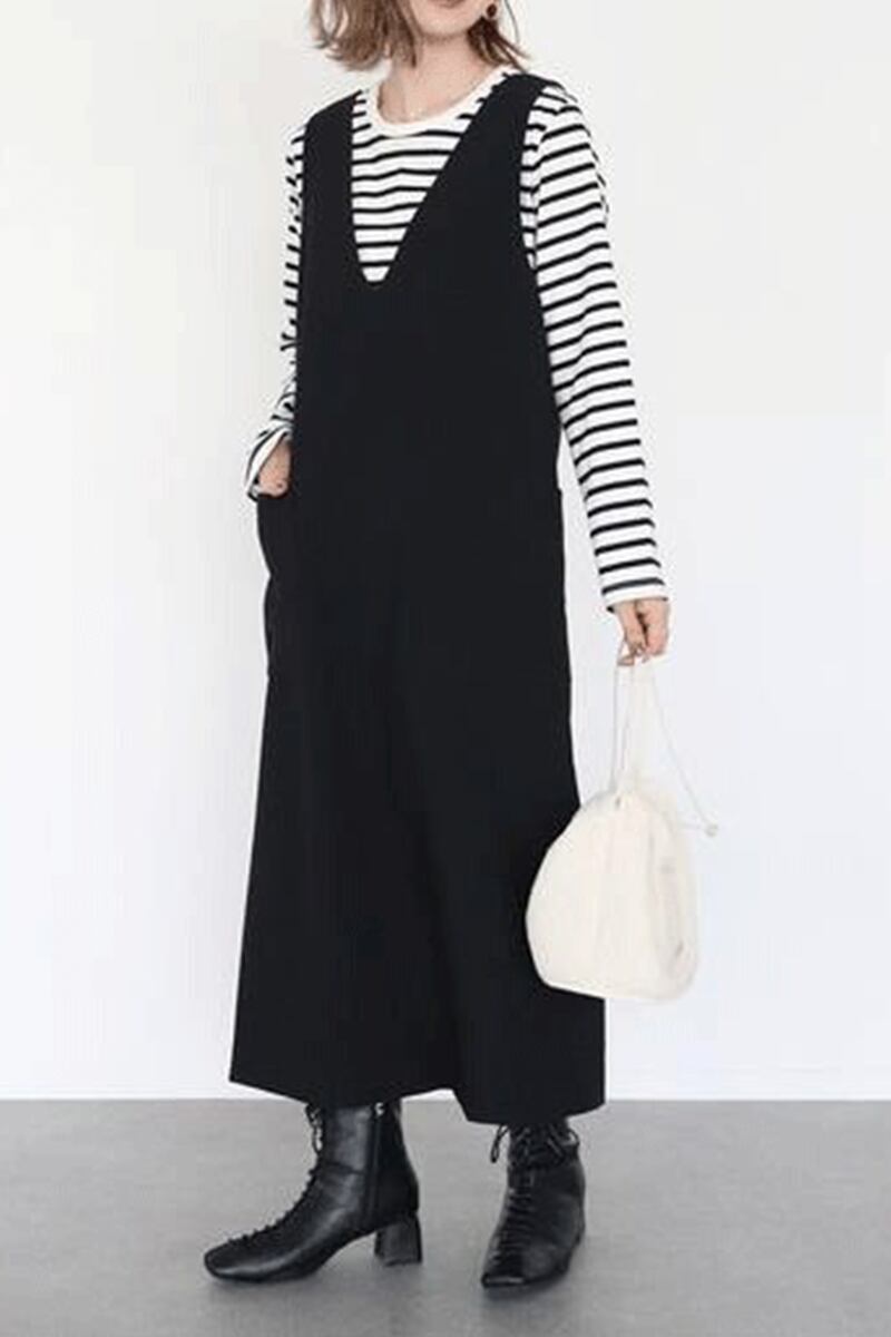 越境貿易22春と秋の新しいVネックルーズベストドレス、大きなポケット付きカジュアルノースリーブミドル丈スカート スプリング 春物 オータム 秋物 cat887248257353