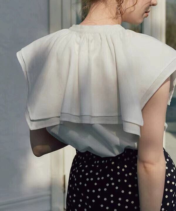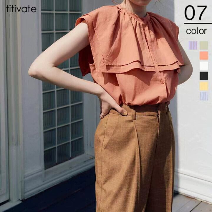 越境 ese 婦人服レイヤード蓮の葉の襟プリーツブレストシャツカーディガン夏の新しい甘いストライプノースリーブトップ レッド 大人ガーリー スウィート キュート カジュアル サマー 夏物 cat880516175807