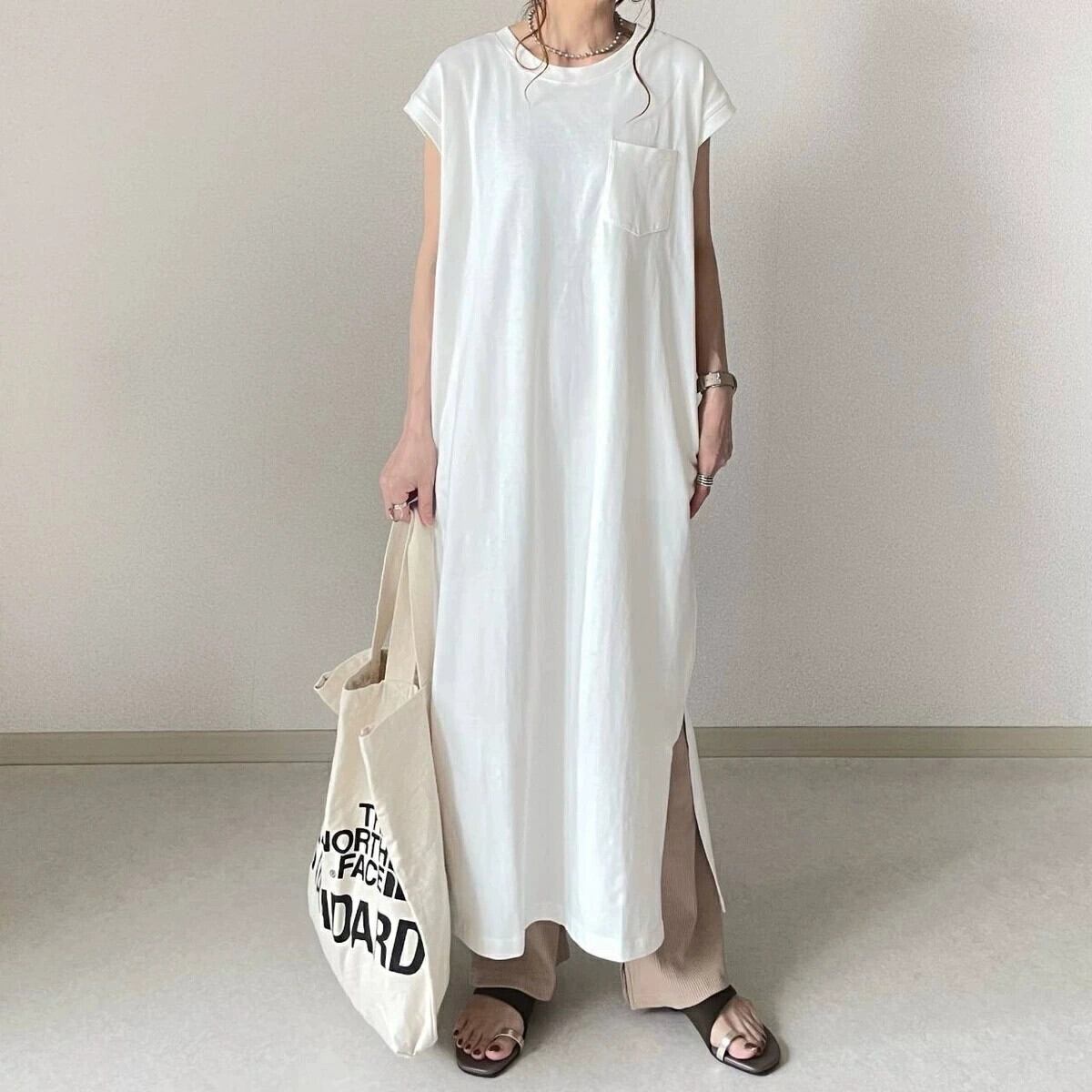 クロスボーダー ese 夏の女性のラウンドネック胸パッチポケット緩い大きいサイズの綿 T シャツスカートミドル丈膝上ドレス コットン 大きめサイズ サマー 夏物 Oネック Tシャツ cat880106852317