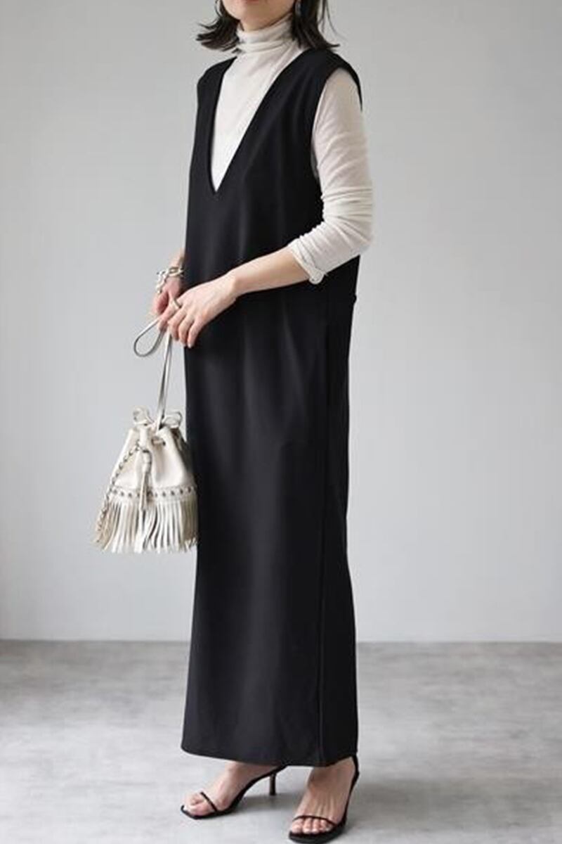 eign Trade Amazon 2022 春ドレス ese ノースリーブ V ネック ロングポケット装飾プルオーバー ベストドレス スプリング 春物 Vネック cat841913711213