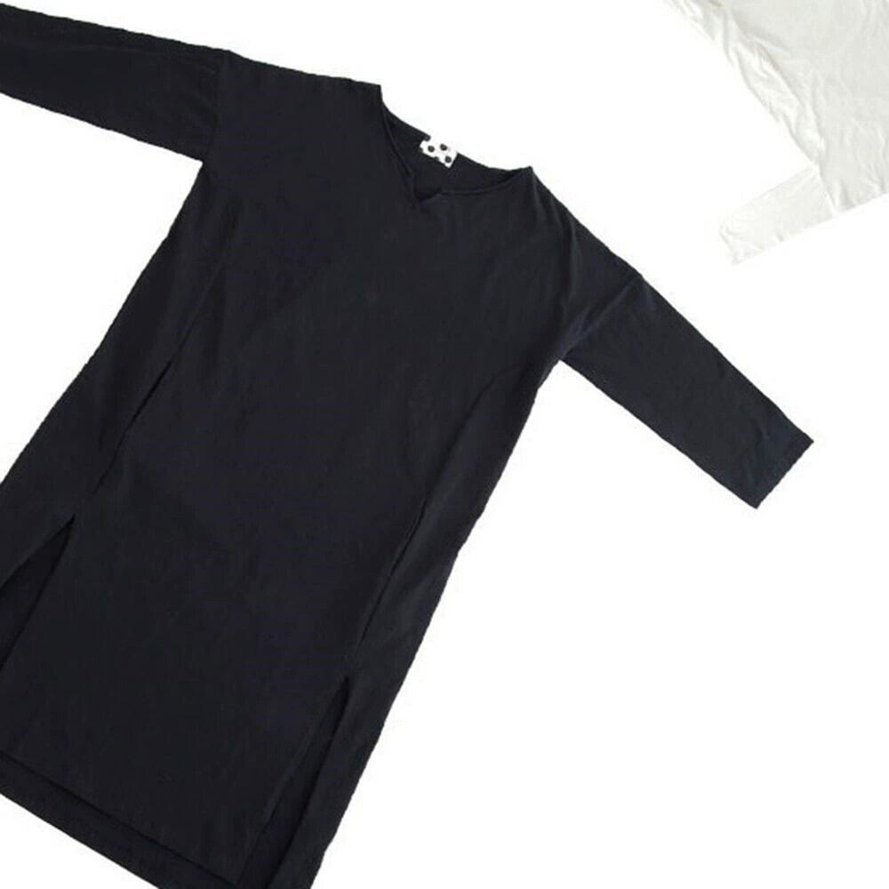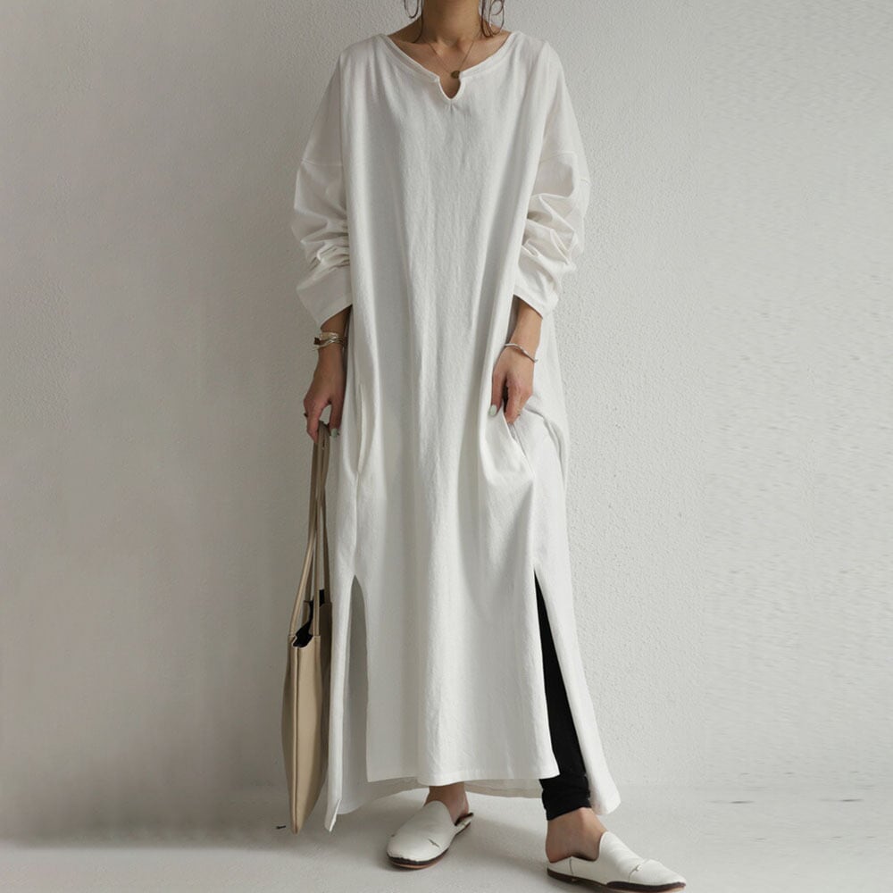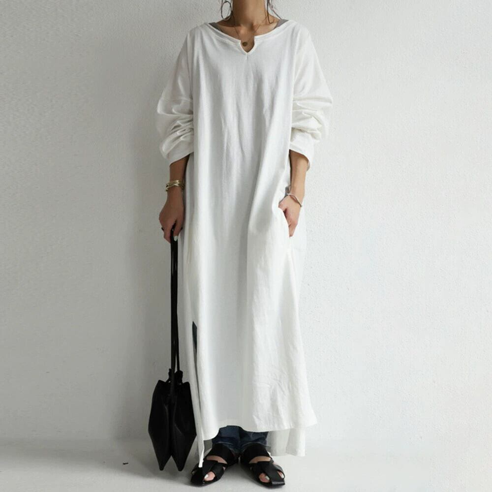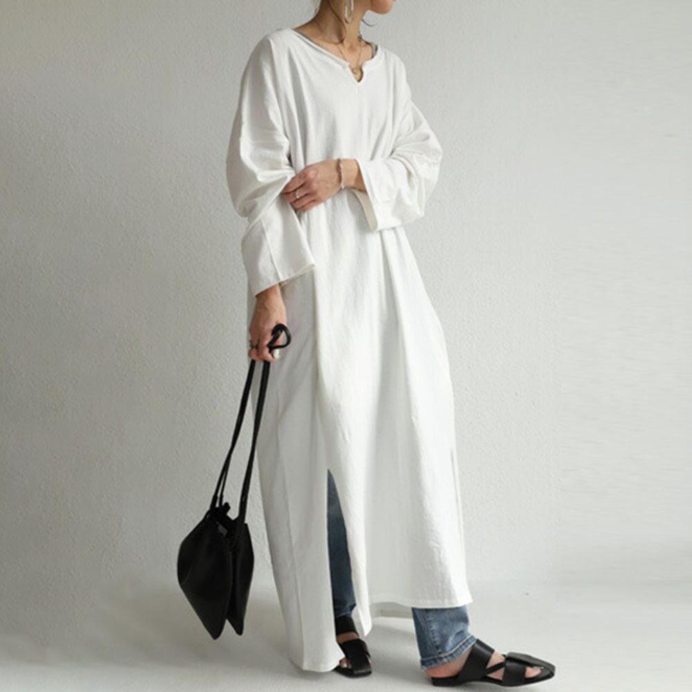 クロスボーダーエセやロングドレス女性22春夏無地サイドスリット長袖ゆったり大きいサイズカジュアルTシャツワンピース 大きめサイズ スプリング 春物 サマー 夏物 ソリッドカラー cat87337000175