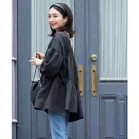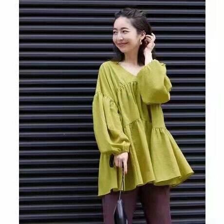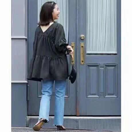 越境と南の新しい2022夏の新しい大きいサイズのルーズスイートVネックの小さなシャツしわのあるスプライシングドールシャツシャツ 大きめサイズ 大人ガーリー スウィート キュート カジュアル サマー 夏物 cat892054265496