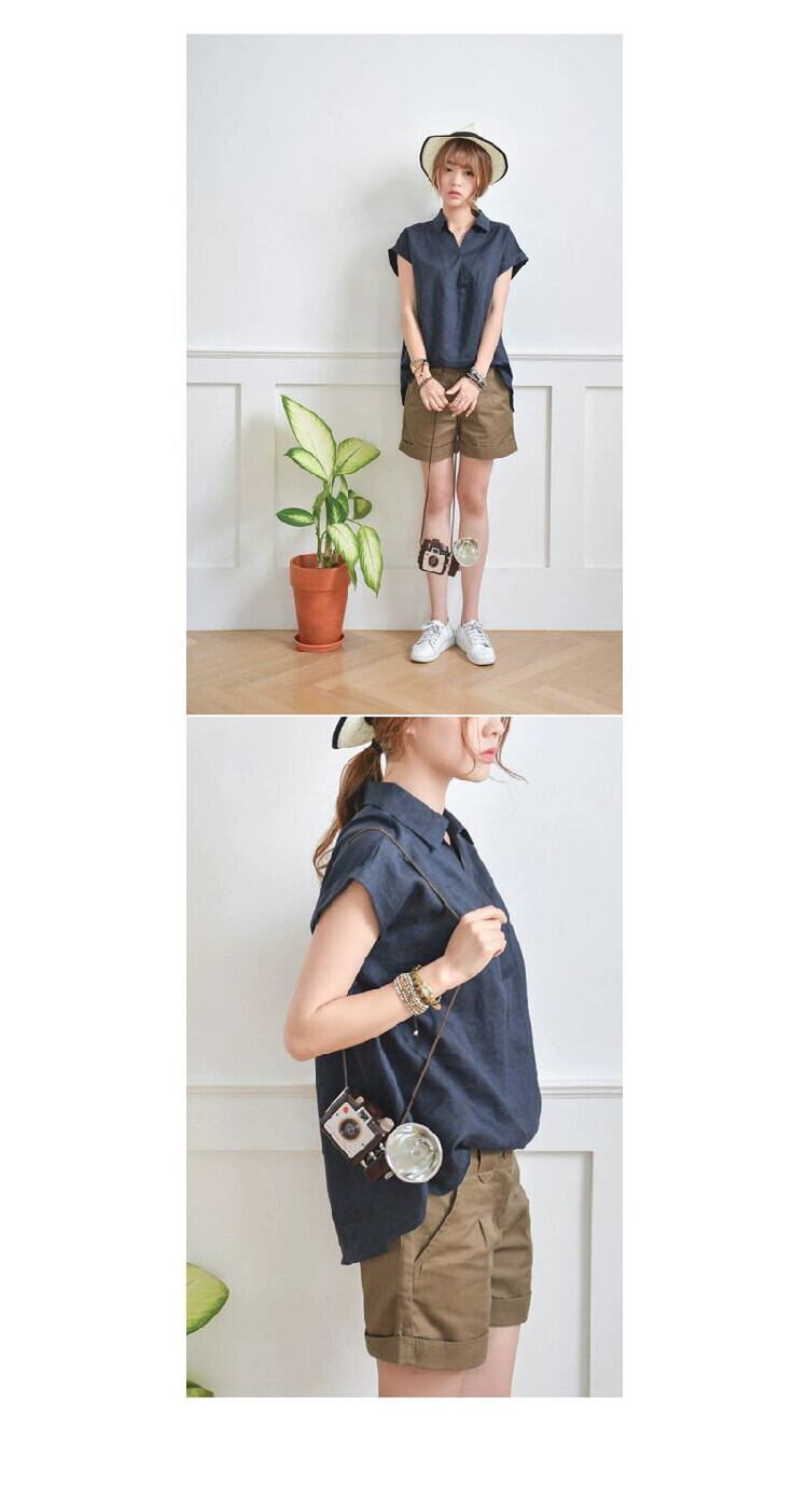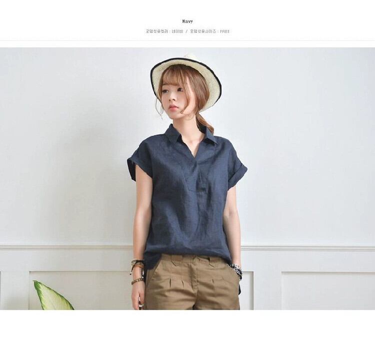 シンプルな性格のバージョンのフロントショートバックロングラペルプルオーバーシャツ女性 2022 夏オリジナルカジュアル半袖リネントップ サマー 夏物 cat833995262889
