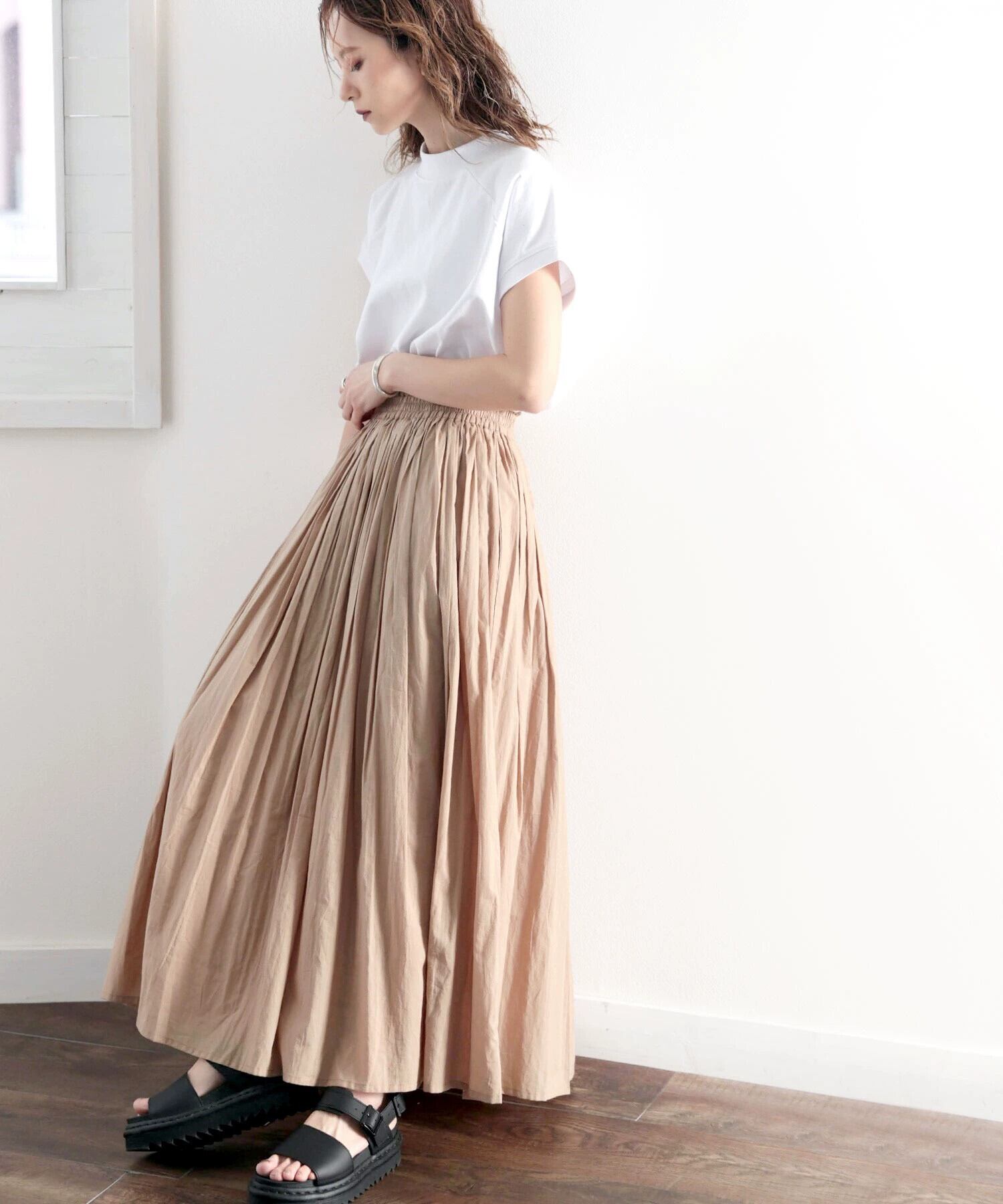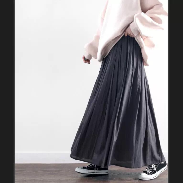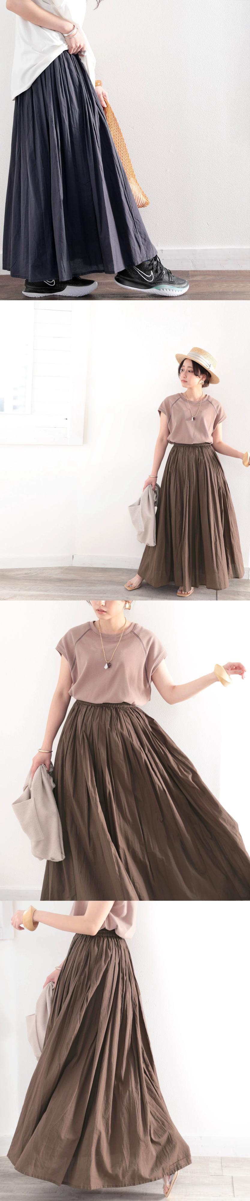 2022 ese と春の新作婦人服オールマッチ痩身スカート弾性ウエストネクタイプリーツコットンロングスカート エラスティック 伸縮 スプリング 春物 cat859801600329
