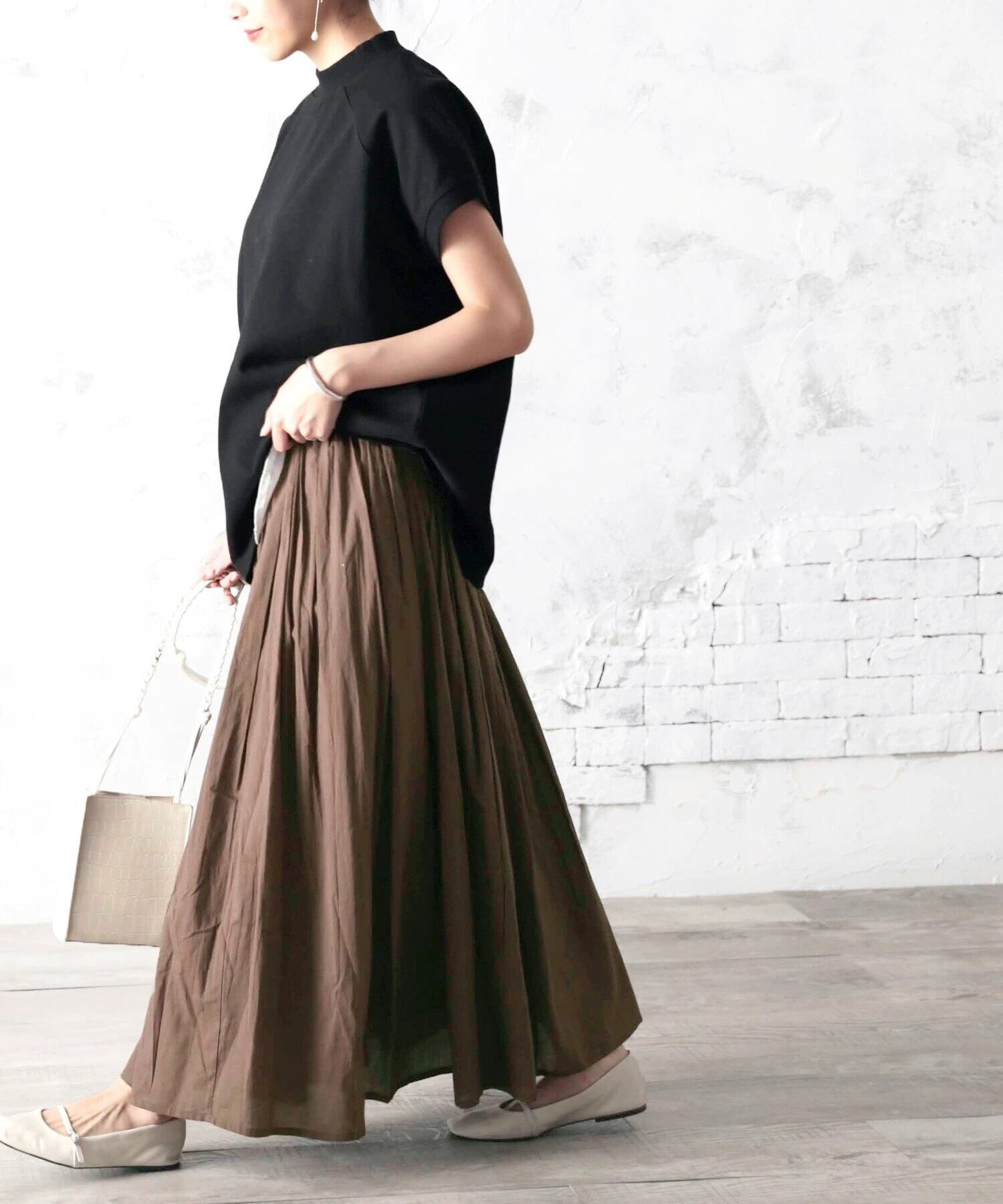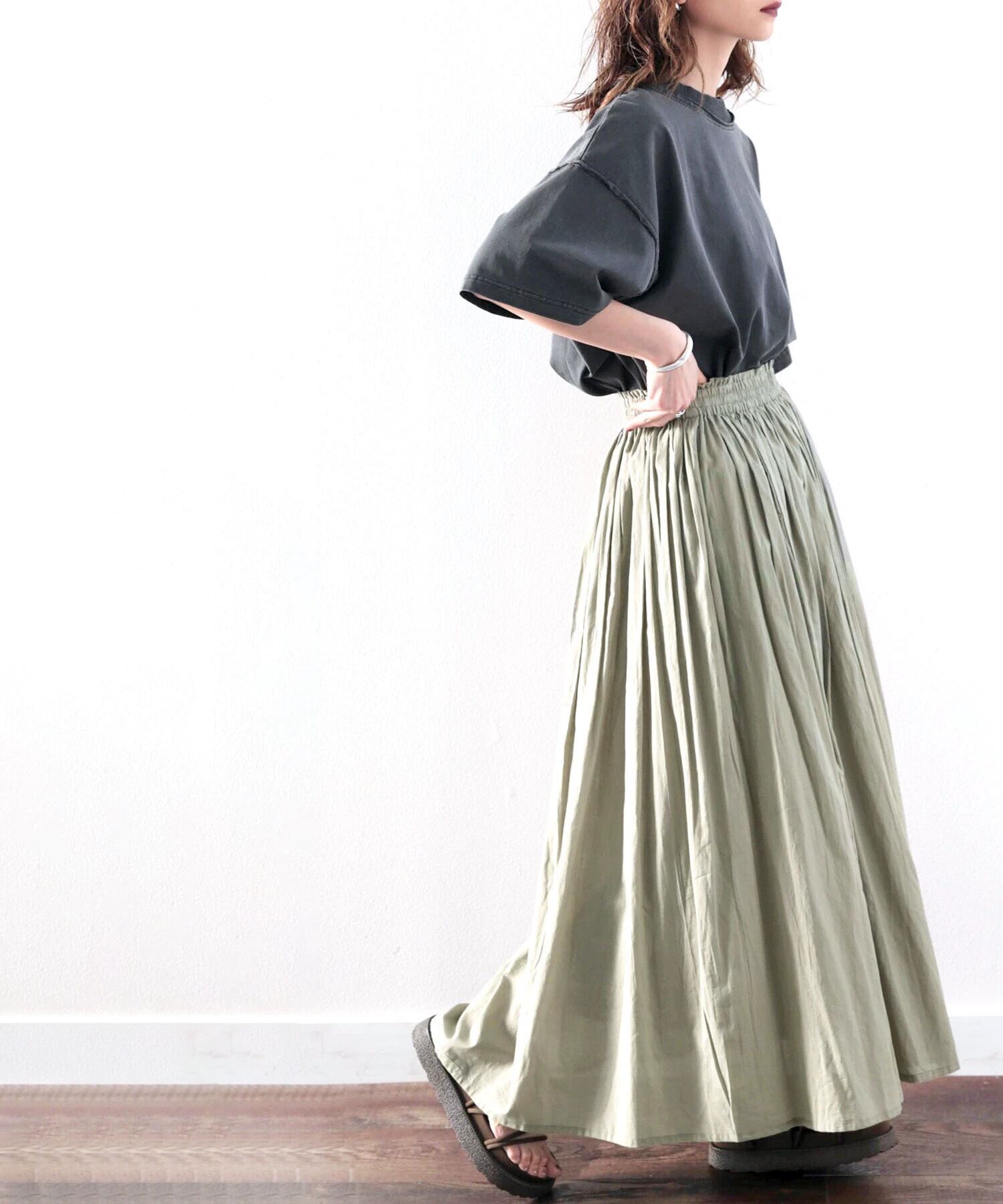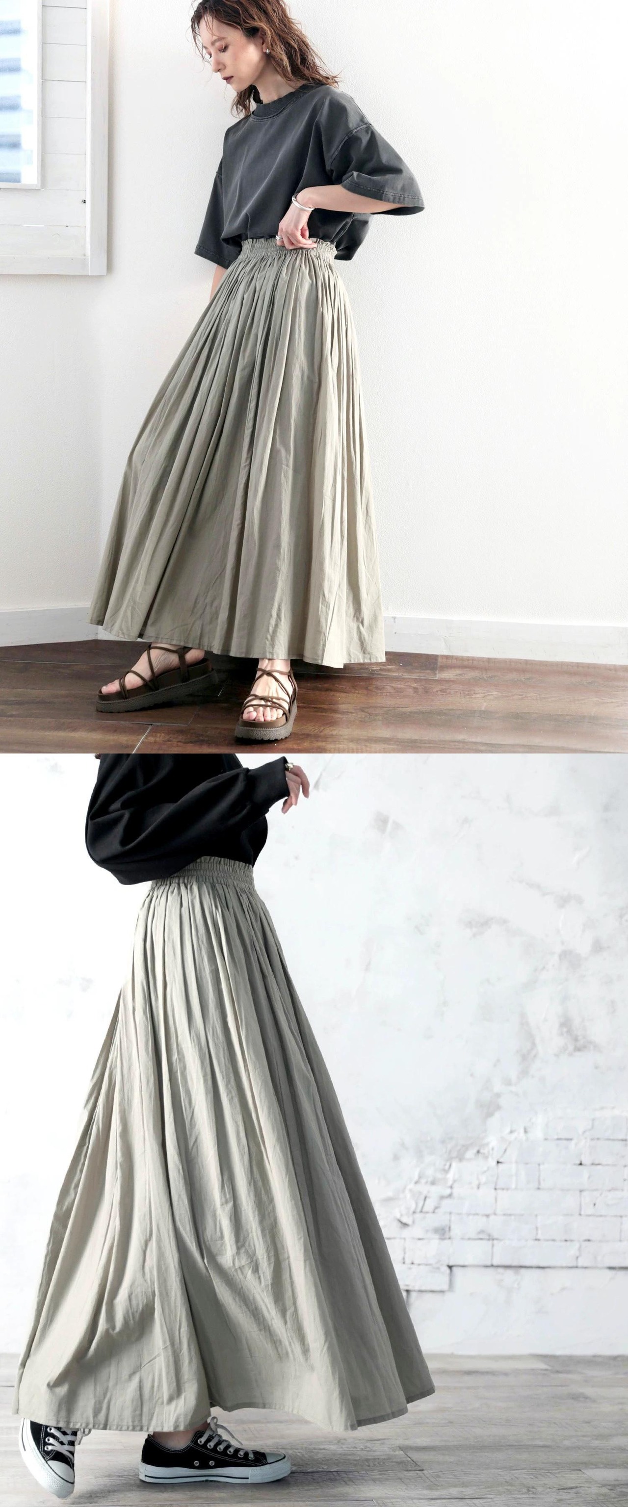 2022 ese と春の新作婦人服オールマッチ痩身スカート弾性ウエストネクタイプリーツコットンロングスカート エラスティック 伸縮 スプリング 春物 cat859801600329