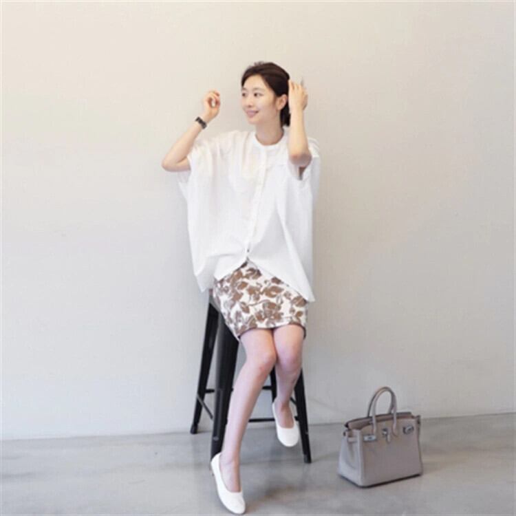 と南の新しいレトロなゆったりとした大きいサイズの綿のカジュアルな白い半袖シャツの女性の不規則なコウモリの形のデザインセンス ホワイト コットン 大きめサイズ cat86698064282