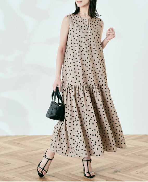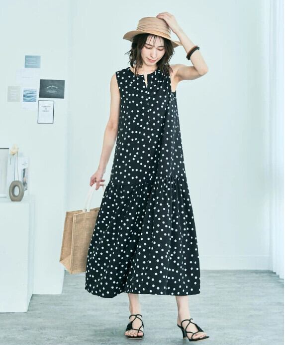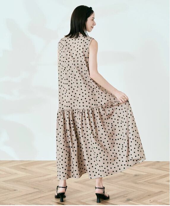越境ロッテeseと怠惰なスタイルの緩くて薄いノースリーブ水玉ドレス夏の新しいフリルロングスカート サマー 夏物 cat844061213591