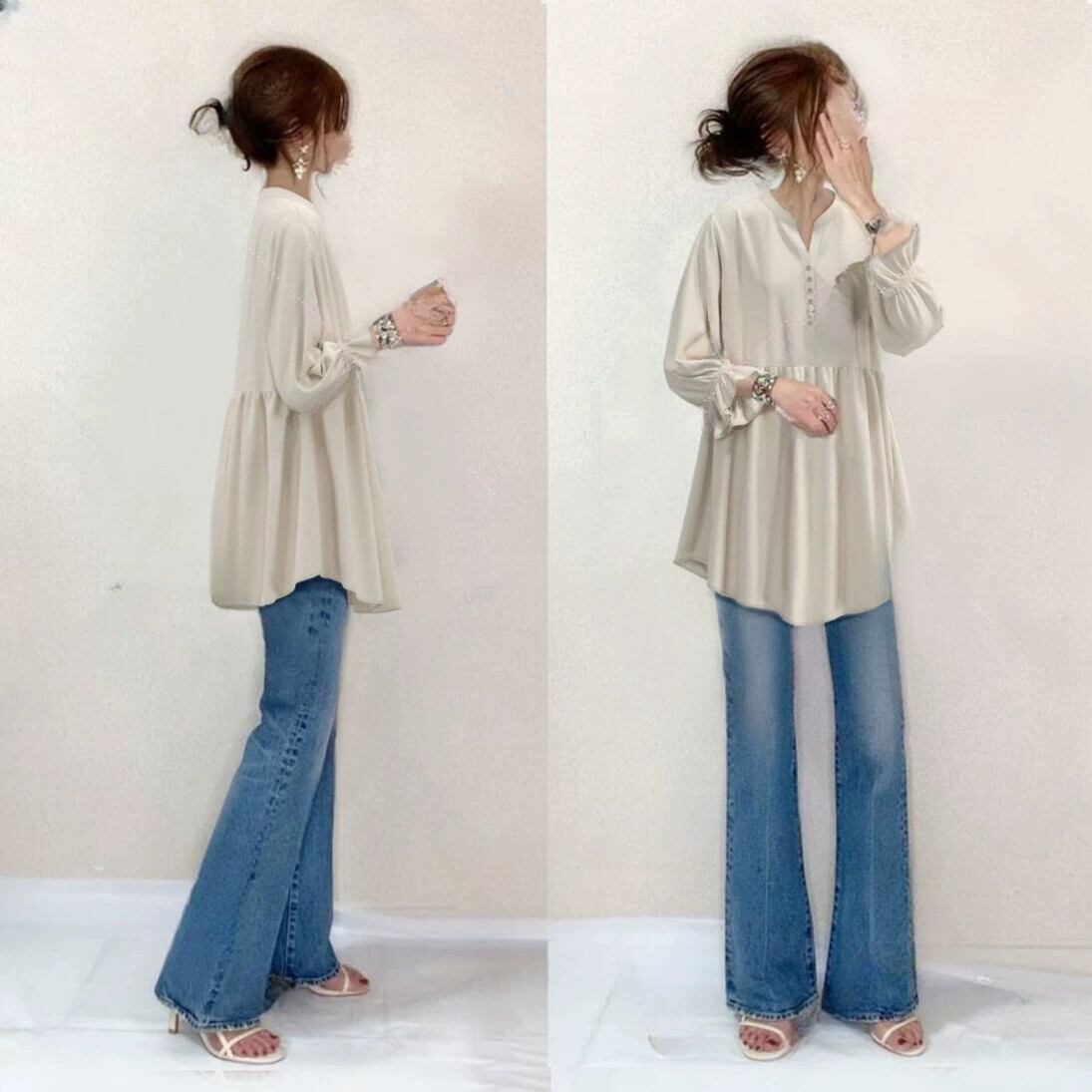 越境ロッテ ese 2023 新しい緩くて薄いカバー腹半袖ミッドレングススリム無地シャツトップ ソリッドカラー cat836325675381