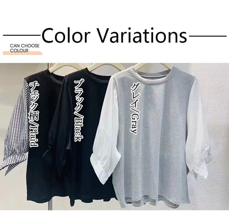 クロスボーダー エーゼと Tシャツ シャツ レディース 夏 カラーマッチング シック ラウンドネック トップス ゆったり レトロ デザイン感 七分袖 サマー 夏物 Oネック cat887240788837