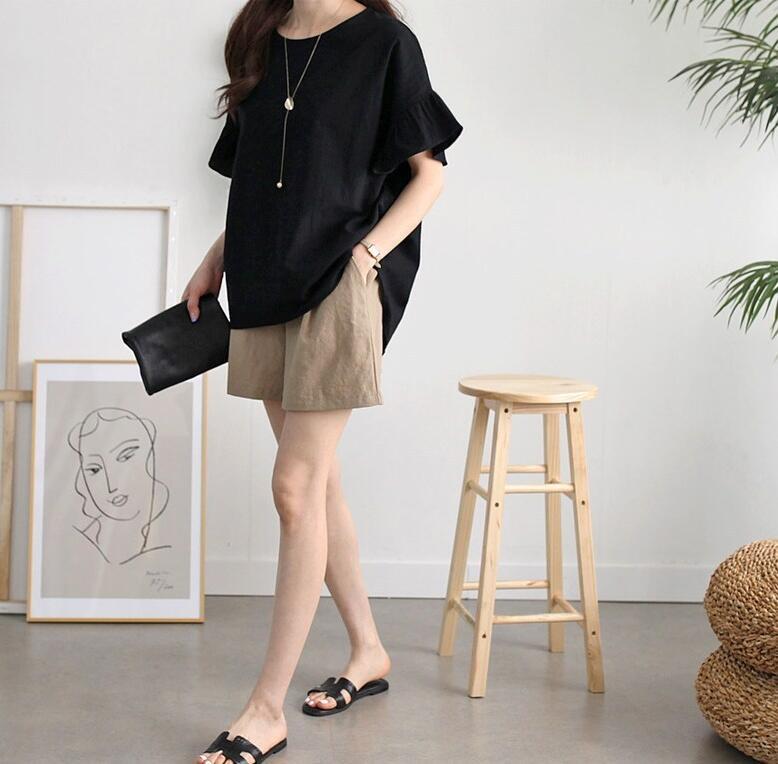 クロスボーダー ese と新しい無地シンプルな蓮の葉の袖半袖シャツフロントショートバックロングルーズドールシャツ Tシャツ女性の夏 サマー 夏物 ソリッドカラー cat816486771916