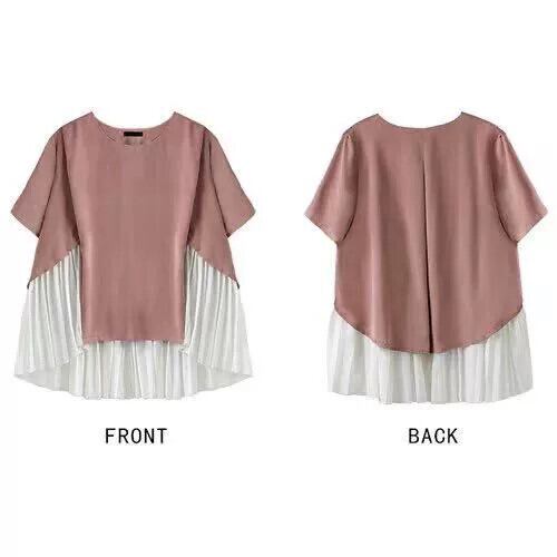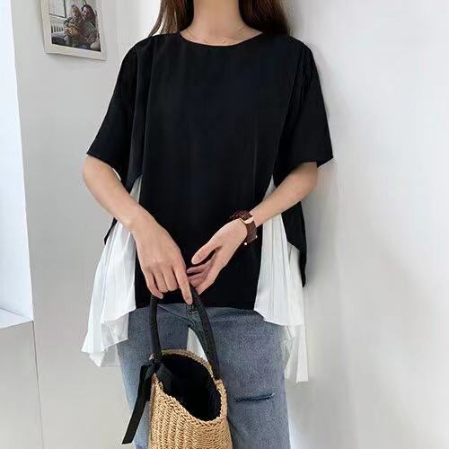 クロスボーダー イーセとロッテ ルーズスイート イレギュラーヘム シフォン ステッチ プリーツ 半袖 Tシャツ レディース 夏 大人ガーリー スウィート キュート カジュアル サマー 夏物 cat899499999818