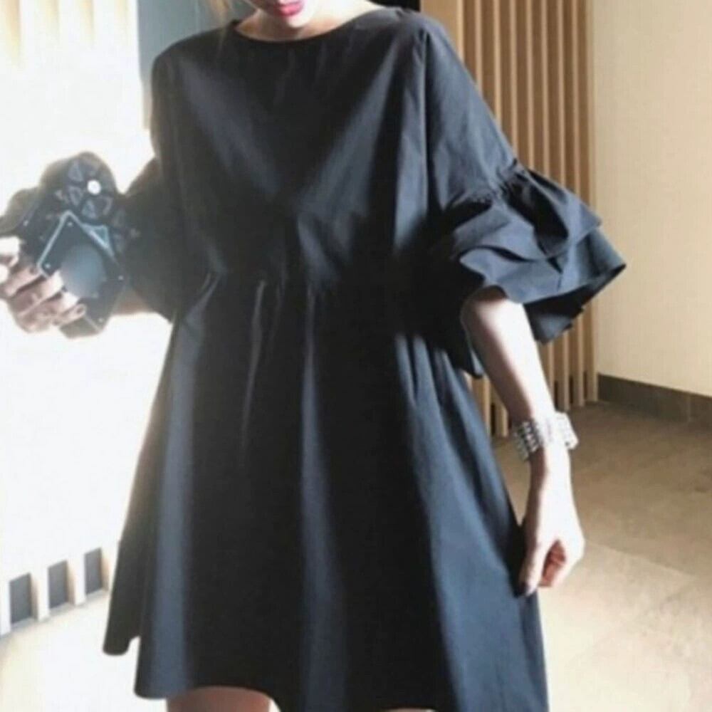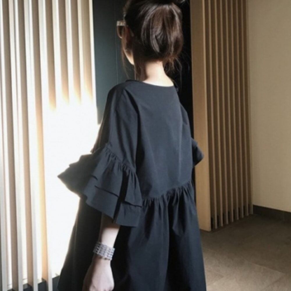 越境eign tradeレディースフリルシャツ夏の新しいeseスタイル軽くて成熟した気質ソリッドカラーラウンドネックルーズトップトレンド サマー 夏物 Oネック cat862048056732