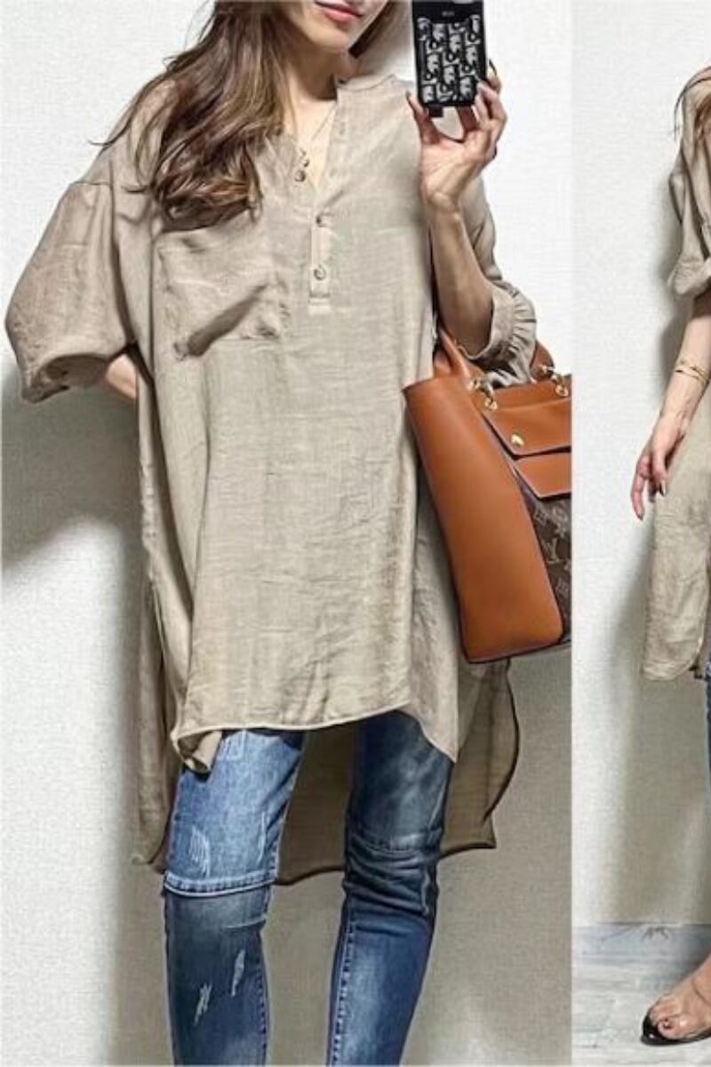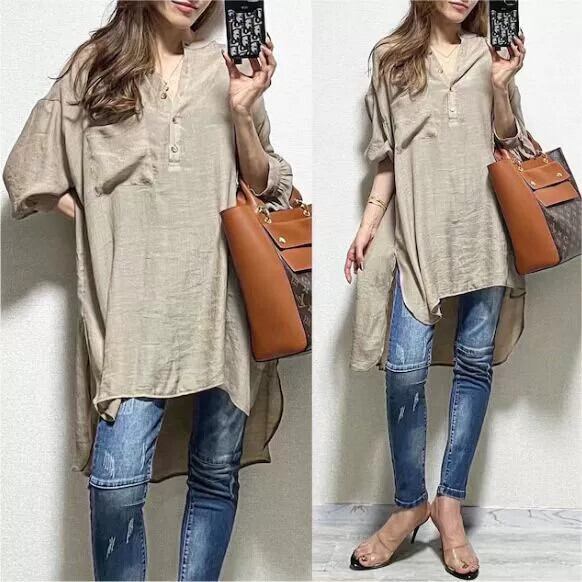 スポット2023秋ゆったり大きいサイズ不規則スリットランタンスリーブドレス 大きめサイズ オータム 秋物 cat860852484974