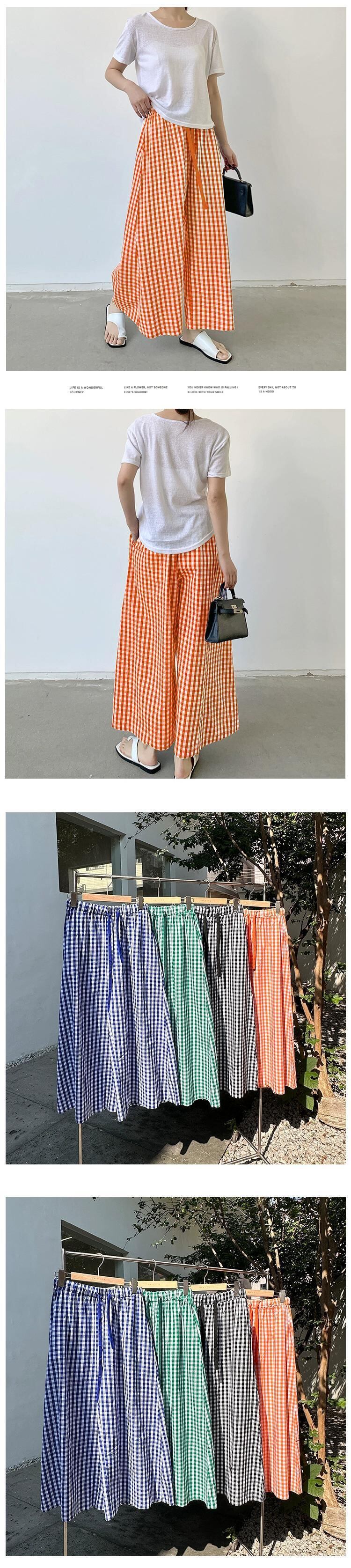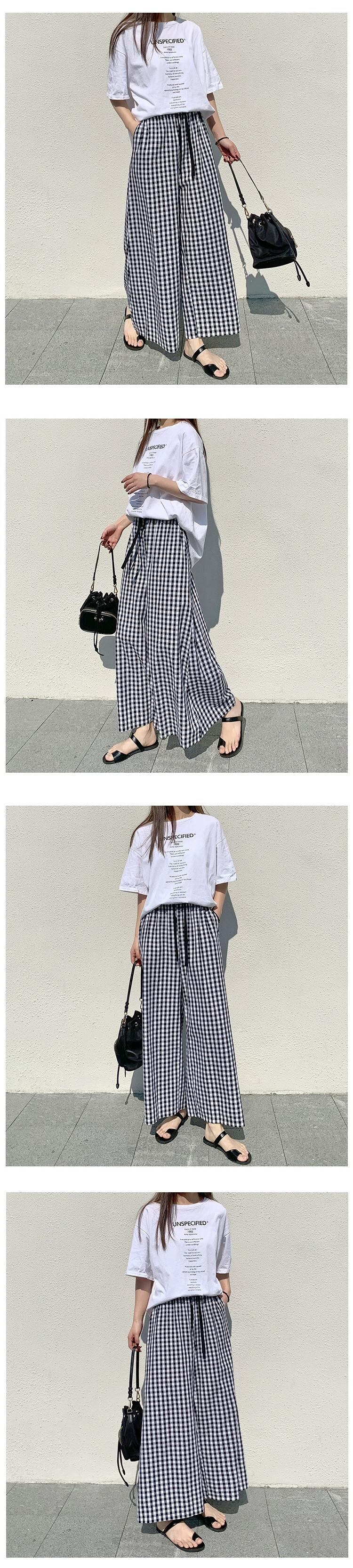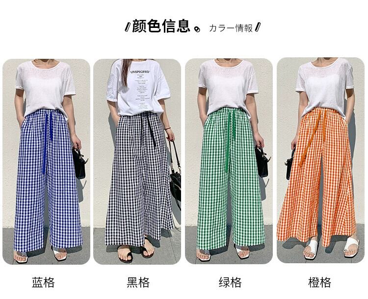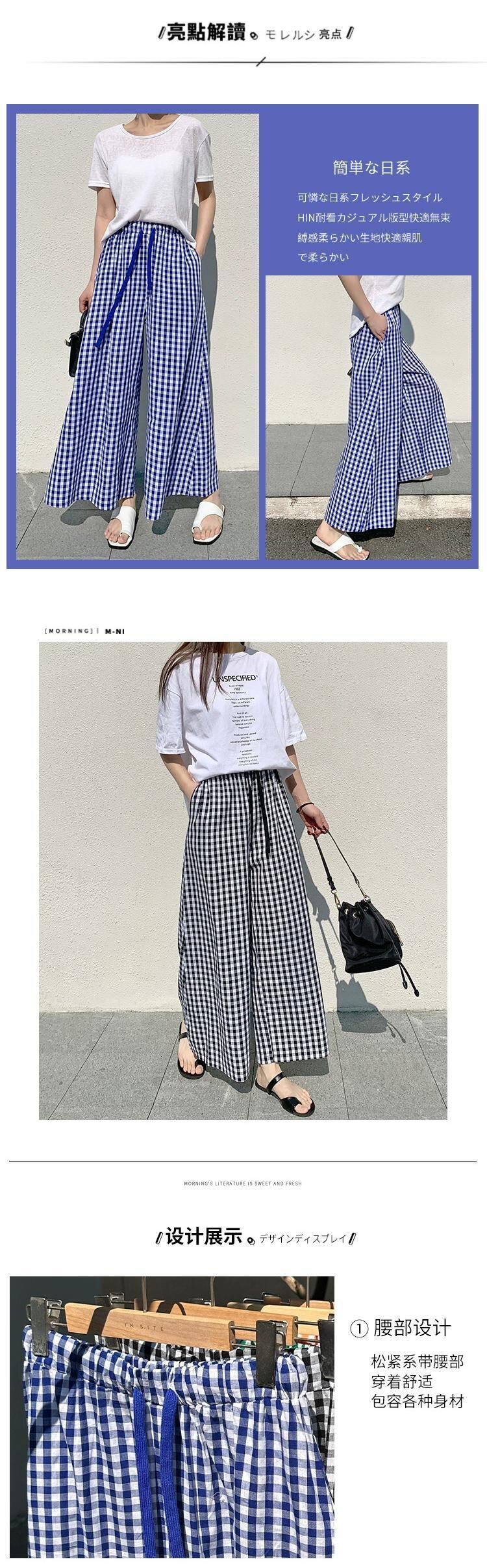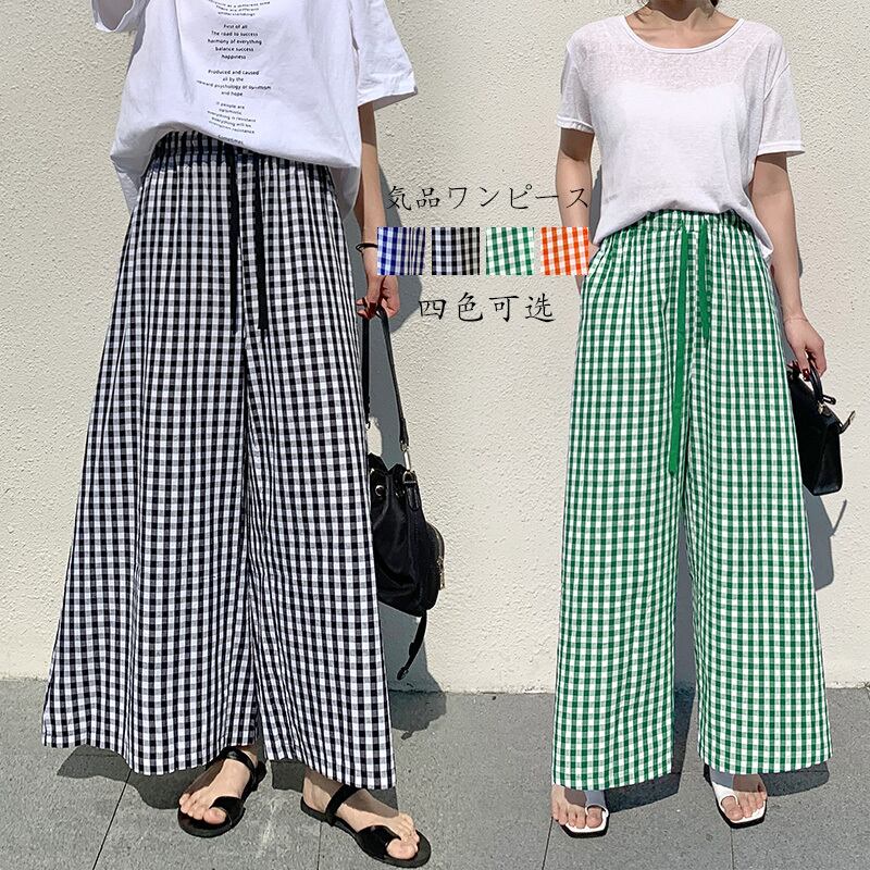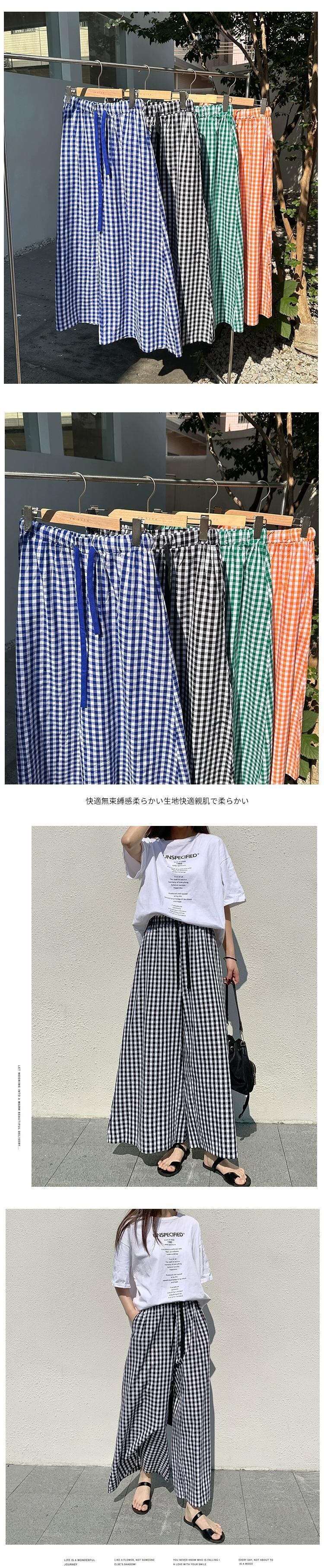 2023 夏の婦人服スタイル弾性ウエストチェック柄スカートルーズビッグスイングスカート 9 点パンツ エラスティック 伸縮 サマー 夏物 cat854507842478
