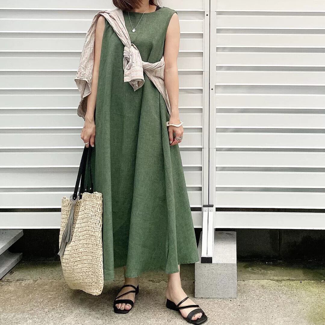 クロスボーダー ese 2022 夏の女性のバックストラップレスノースリーブドレス甘いベストスカートルーズ A ラインロングスカート 大人ガーリー スウィート キュート カジュアル サマー 夏物 Aライン cat827651122883