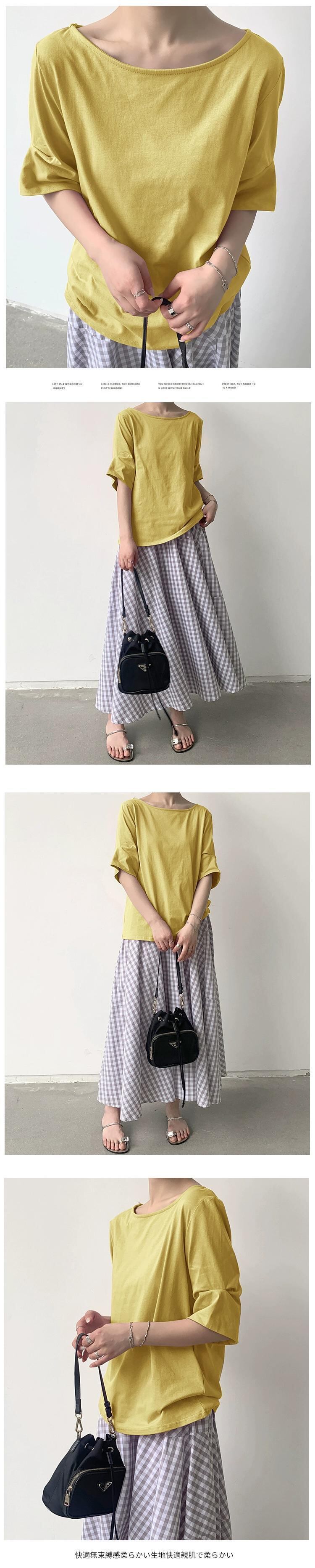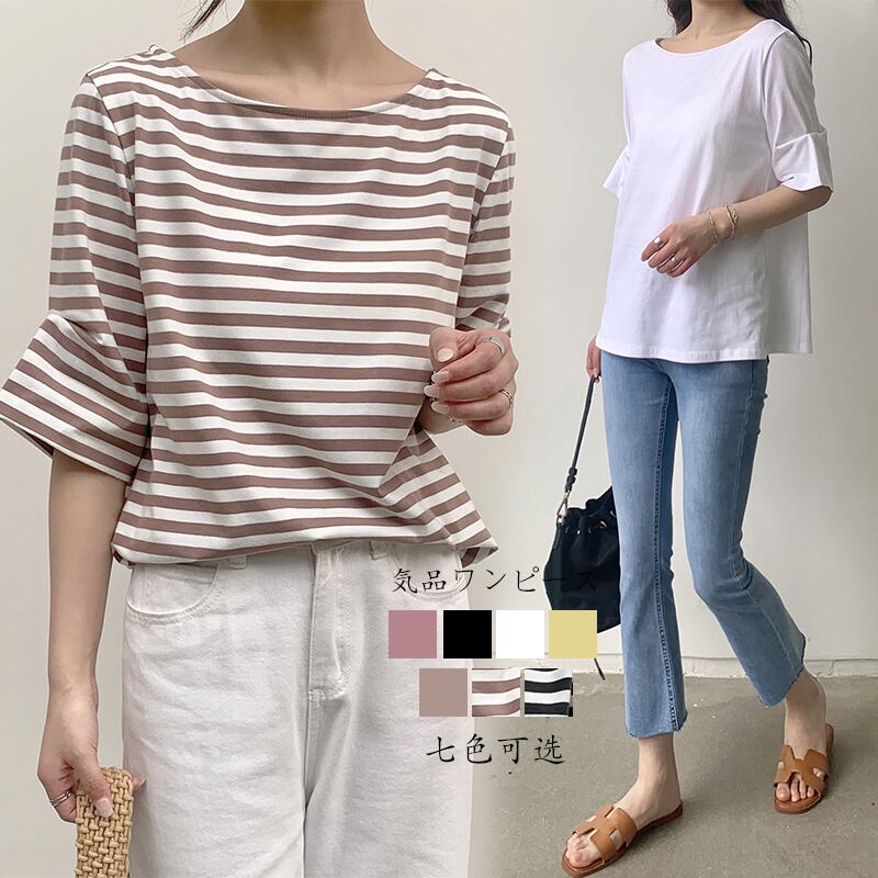 クロスボーダー ese ロッテ夏新 7 色無地ルーズカジュアル 5 分袖 Tシャツ万能トップス サマー 夏物 ソリッドカラー cat831377093216