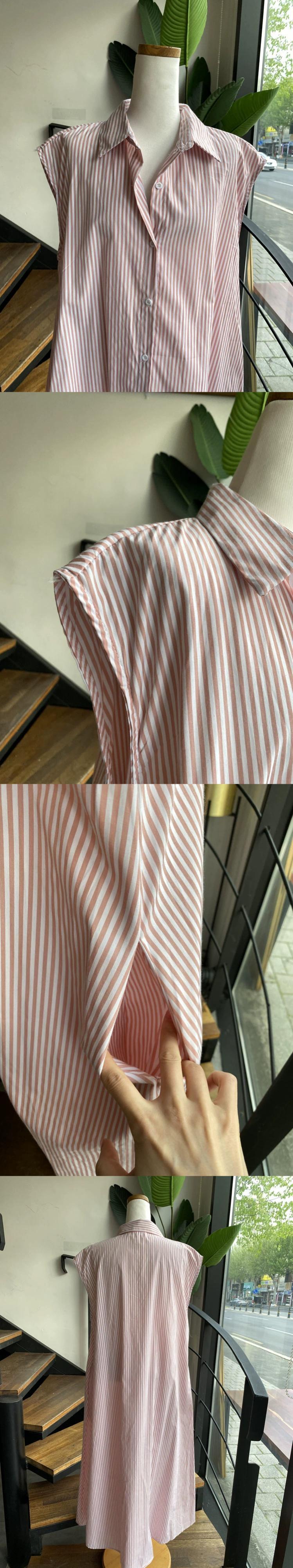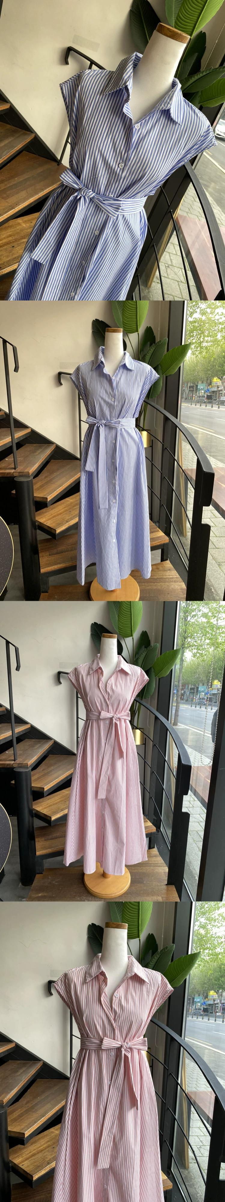 クロスボーダーエーゼとノースリーブシャツドレスレディース夏新作ストライプベストポロカラーシャツミドル丈スカート サマー 夏物 cat847017470844