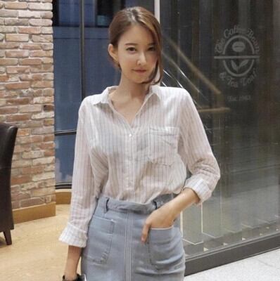 春夏の新バージョンのカジュアルな縦縞の長袖コットンとリネンのシャツは、すべてマッチする小さな新鮮なシャツ、薄いレディーストップスです ロング スプリング 春物 サマー 夏物 ストライプ cat85509481651