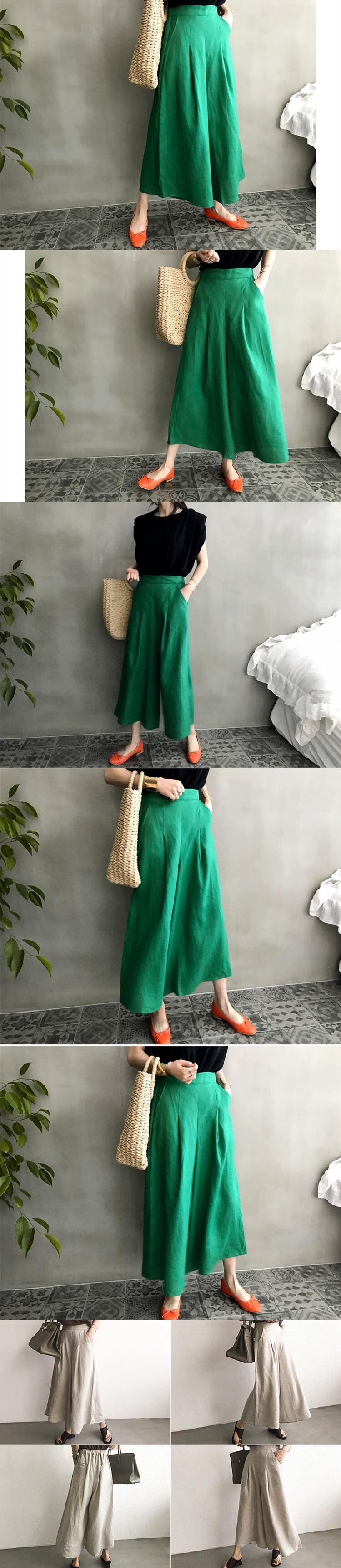 弾性ウエストレトロ薄型ハイウエストワイドレッグキュロットレディース 2022 春秋スタイルカジュアルルーズリネンクロップドパンツ ハイウェスト エラスティック 伸縮 スプリング 春物 オータム 秋物 cat812660784486