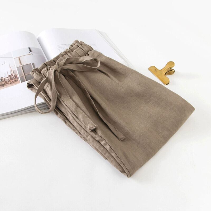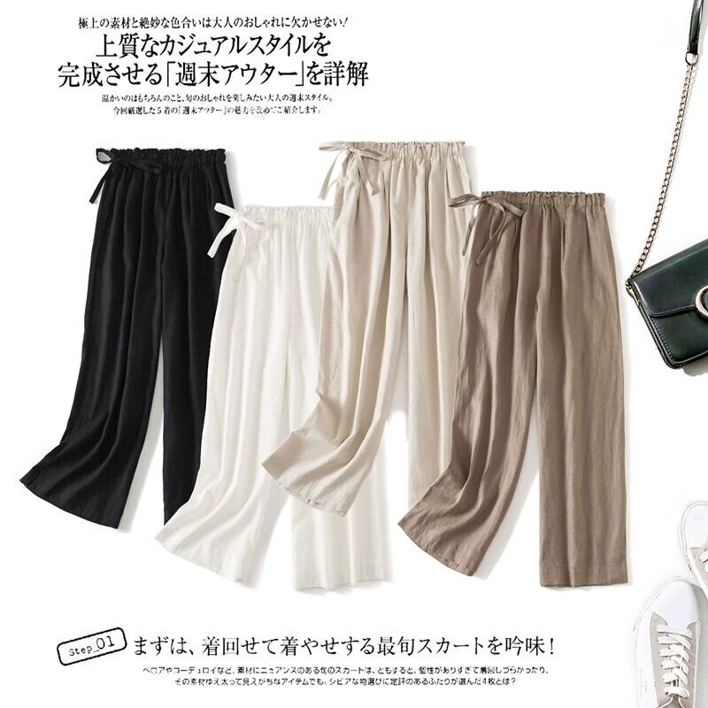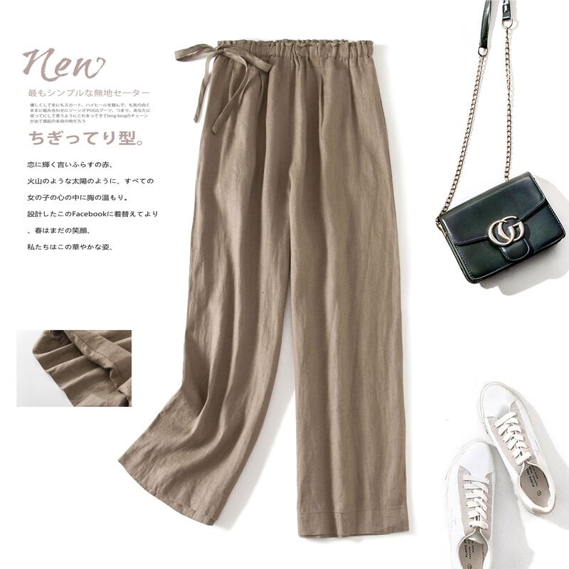 本物の文学と芸術のレトロな9点コットンリネンワイドレッグパンツレディースサマーカジュアルパンツルーズドレープハイウエストストレートレッグパンツ 夏物 cat877526446263