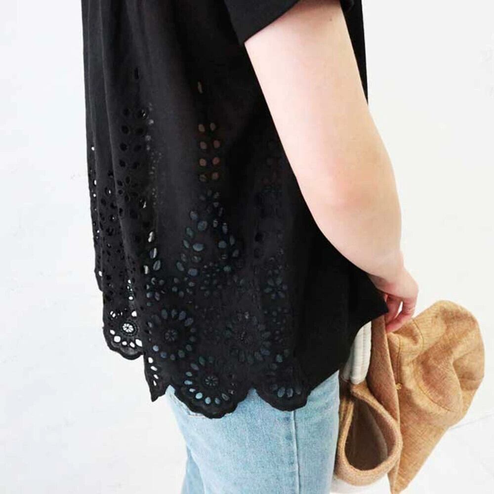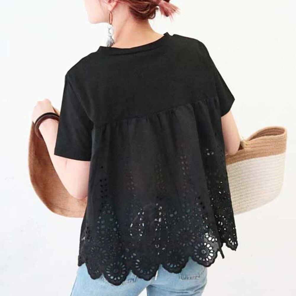 クロスボーダー eign trade シャツ ese と女性のバック中空ステッチラウンドネックドールシャツルーズ半袖 Tシャツトップ夏 サマー 夏物 Oネック cat895861156119