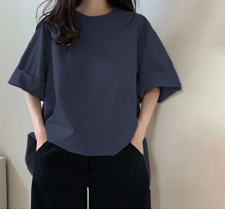 スポットソリッドカラー半袖女性の夏の新しい ese スタイル怠惰なルーズラウンドネックプルオーバーカジュアル tシャツ女性 サマー 夏物 Oネック cat883952049818