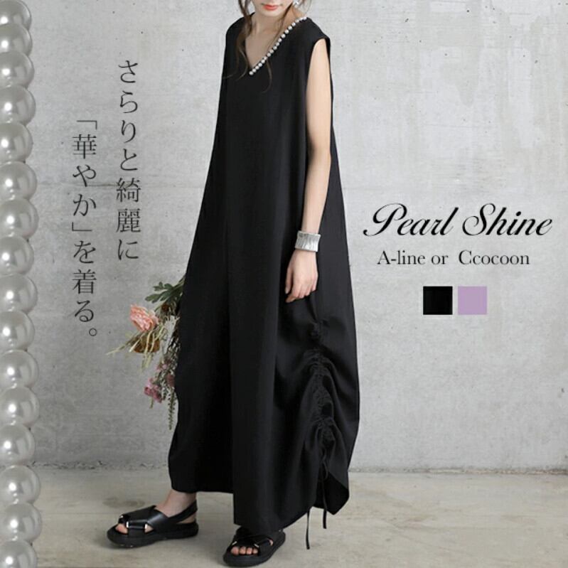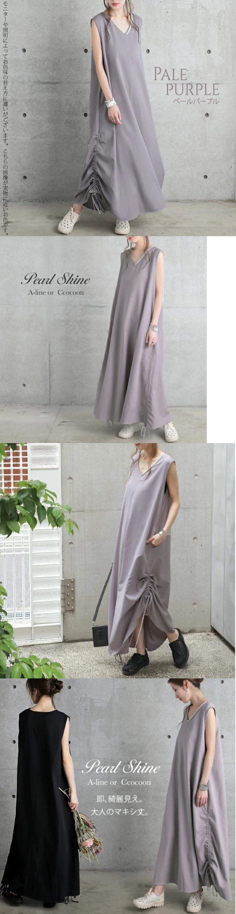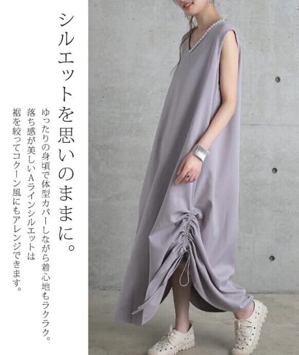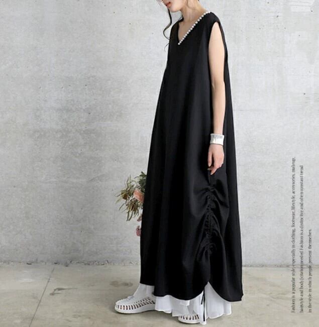 2023 春夏の新ロッテ爆発的なスタイルのハイエンド V ネックルーズノースリーブドレスサイド巾着ロングスカート女性 スプリング 春物 サマー 夏物 Vネック cat858959455917