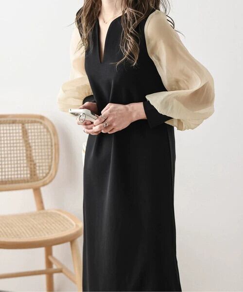 2023南の新しい緩い気質カジュアルシフォンスリーブステッチVネックドレススリットロング配色スカート cat898737210069