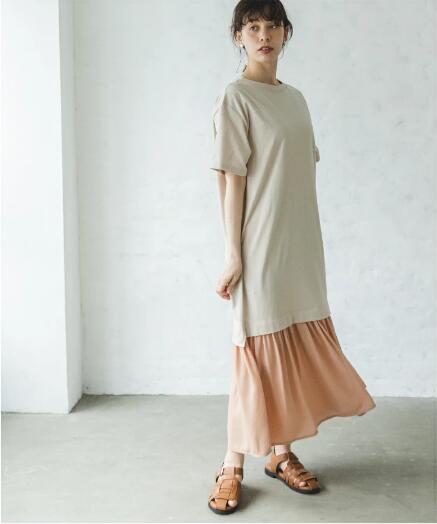 越境貿易の夏カラーコントラストスプライシングメッシュTシャツスカートお腹をカバーして細く見える、西洋風の年齢を軽減するロングスカート サマー 夏物 cat877318652532