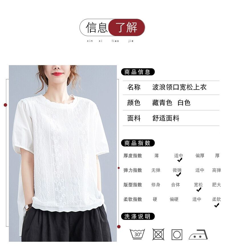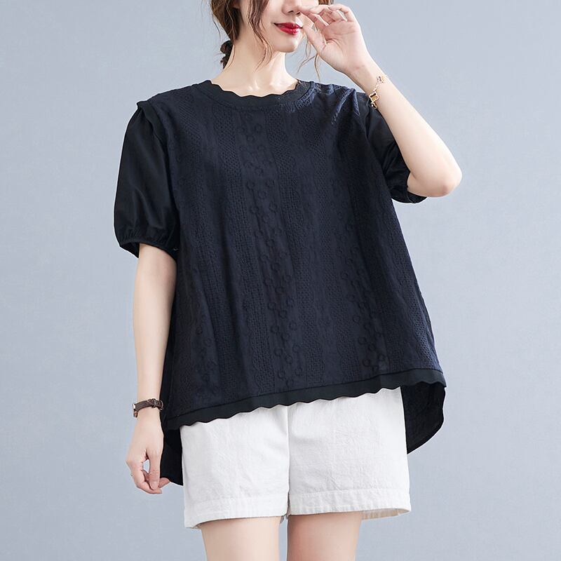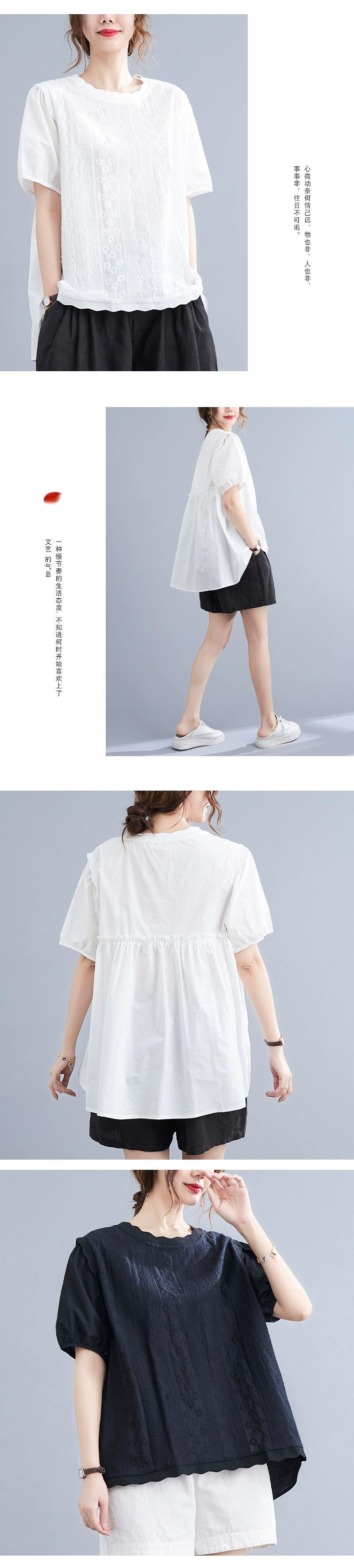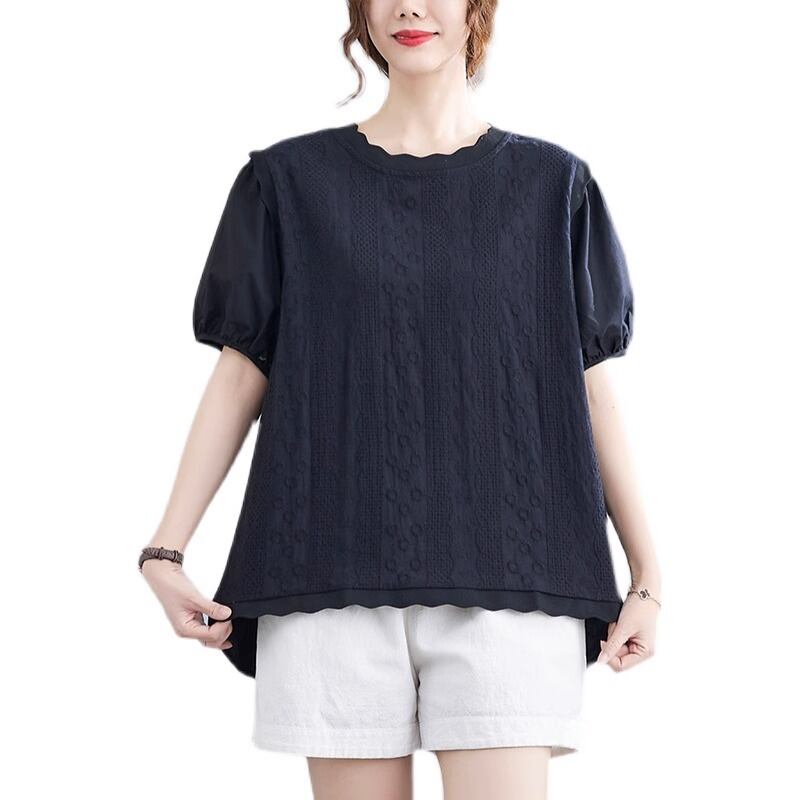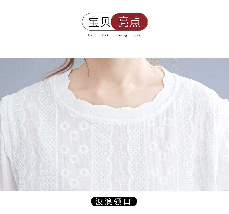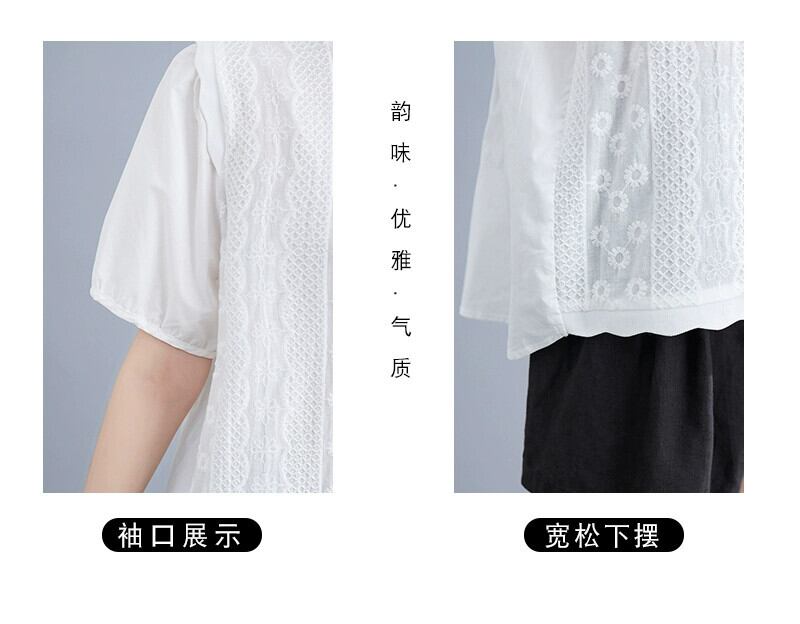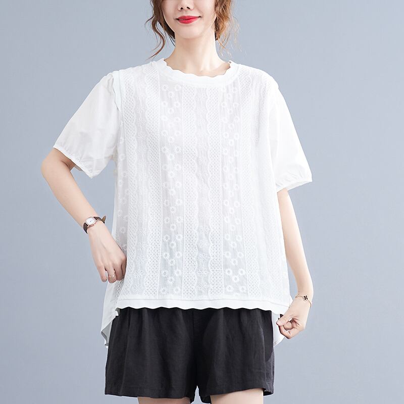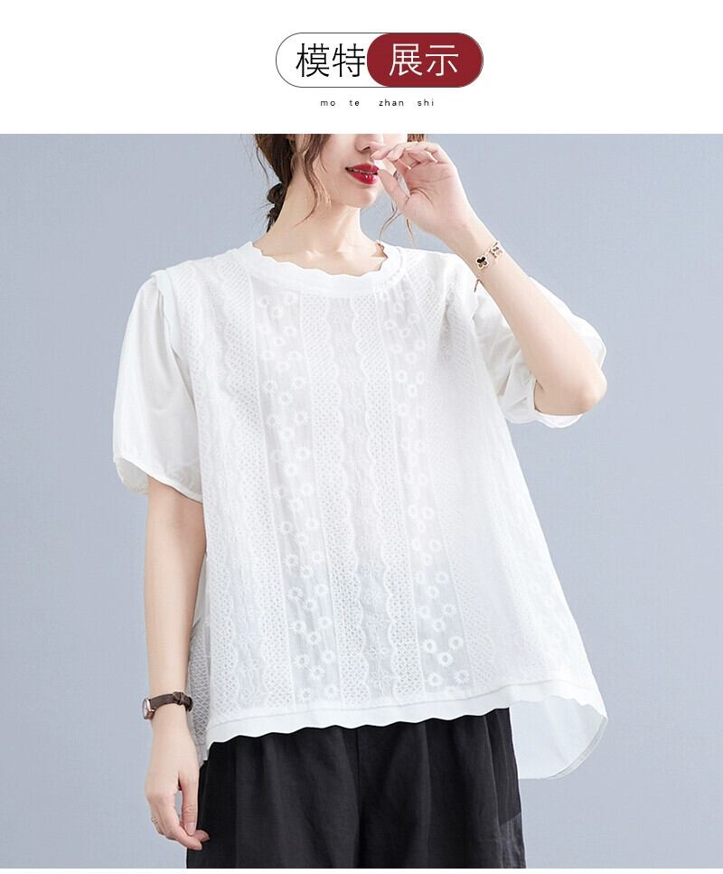 リアル s バージョンの夏のレースラウンドネックドールシャツパフスリーブ重工業刺繍ルーズワイルドコットン Tシャツシャツ サマー 夏物 Oネック cat882676482593