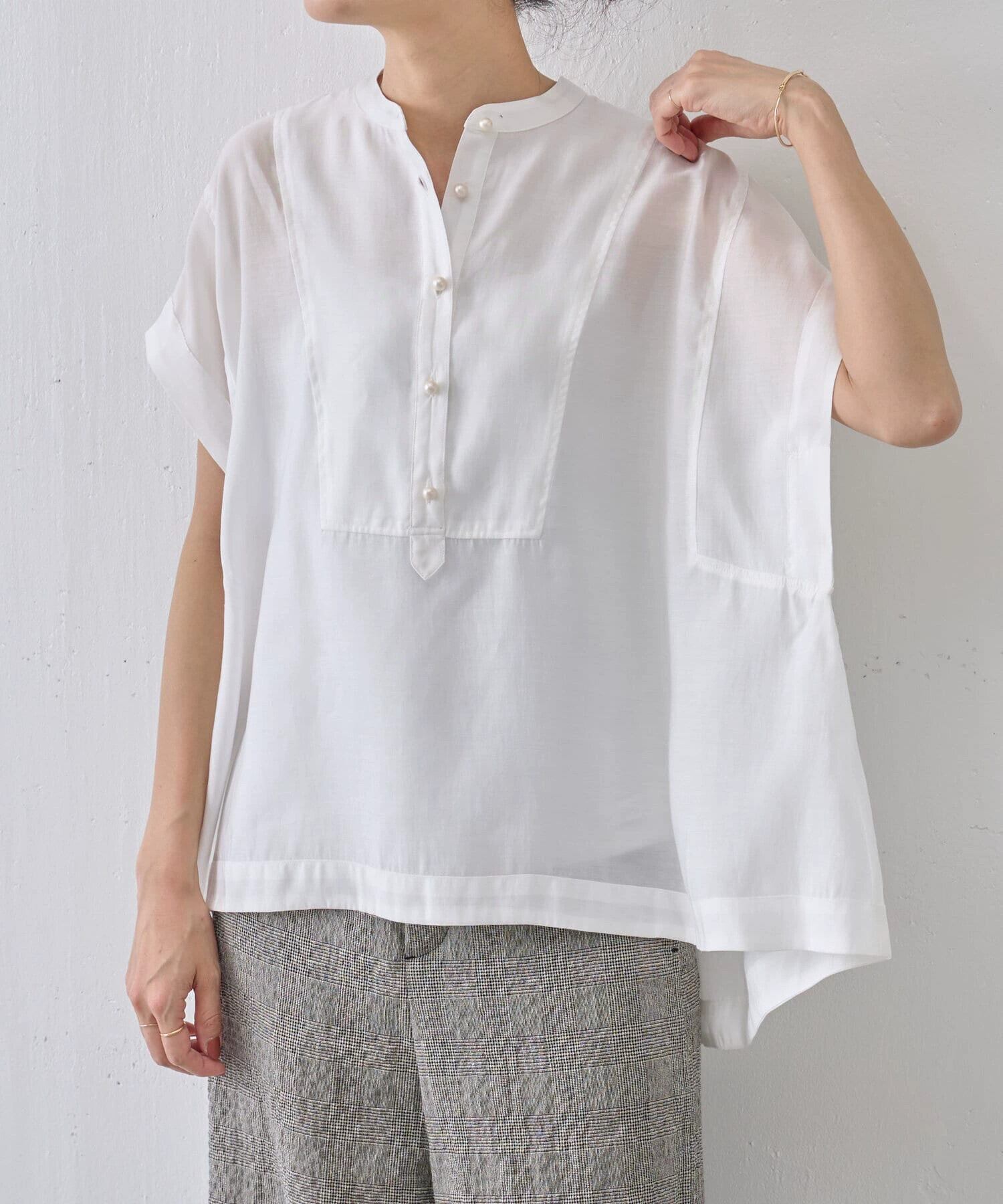 国境を越えた夏の新しい文学的で芸術的なルーズラウンドネックハーフカーディガン半袖ルーズトップ白シャツ女性 ホワイト サマー 夏物 Oネック cat840047997040