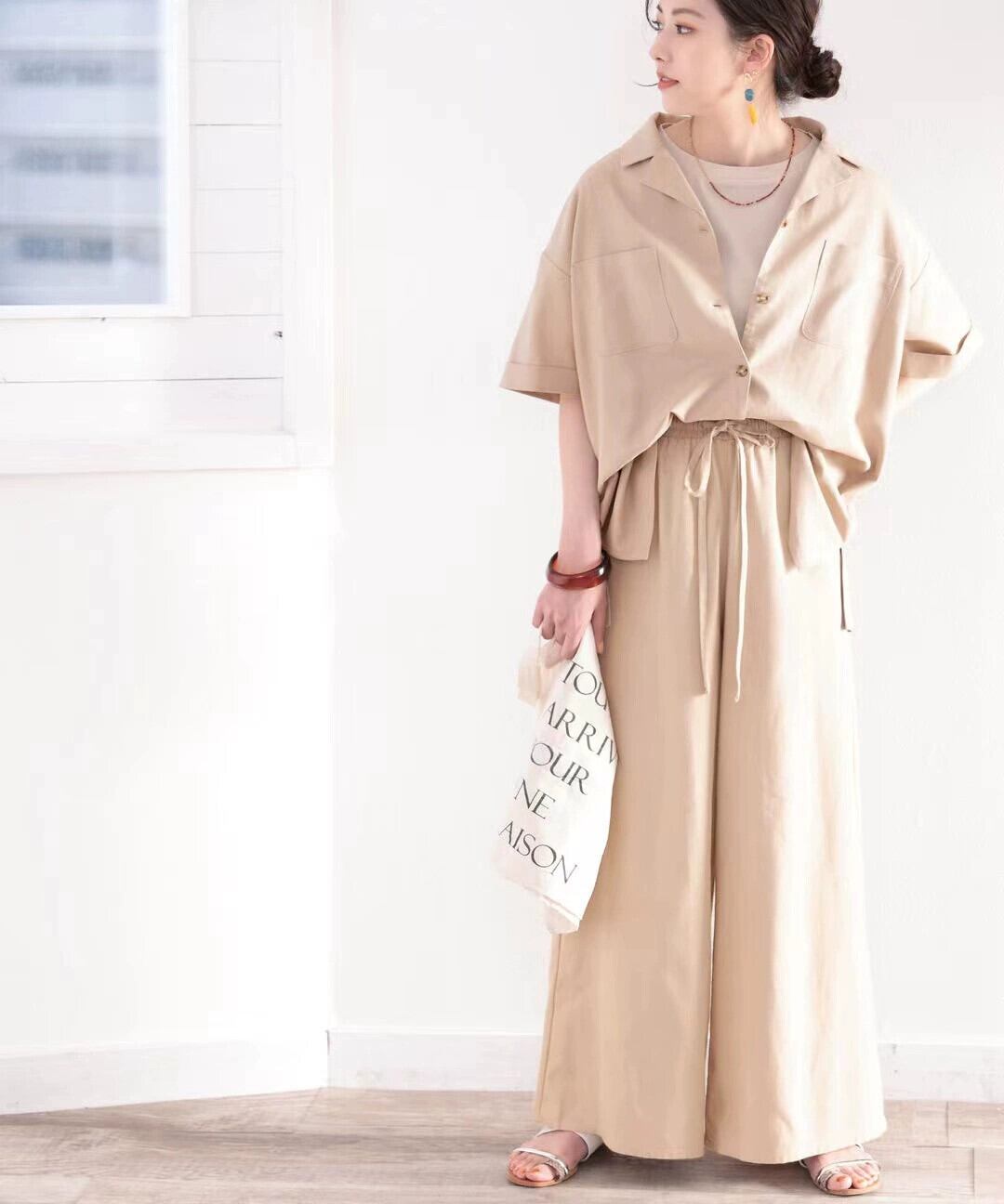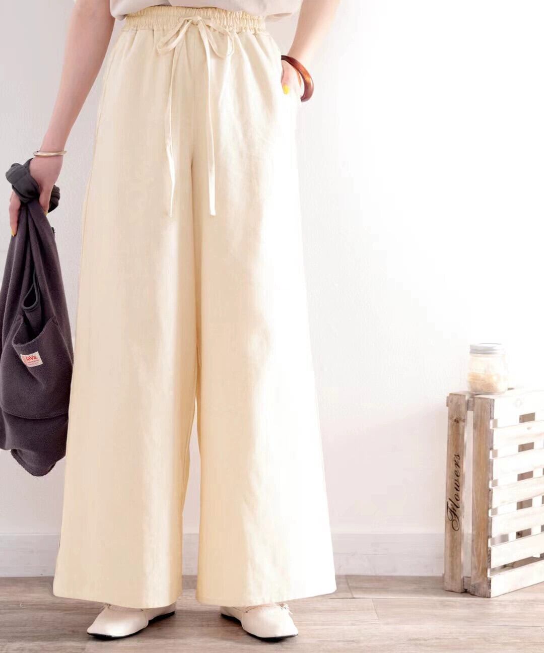 クロスボーダー ese レディース ドレープ ジェントル スタイル パンツ ソリッド カラー レイジー スタイル 伸縮性ウエスト ドローストリング タイ スリミング ワイドレッグ パンツ エラスティック ソリッドカラー cat827913913085