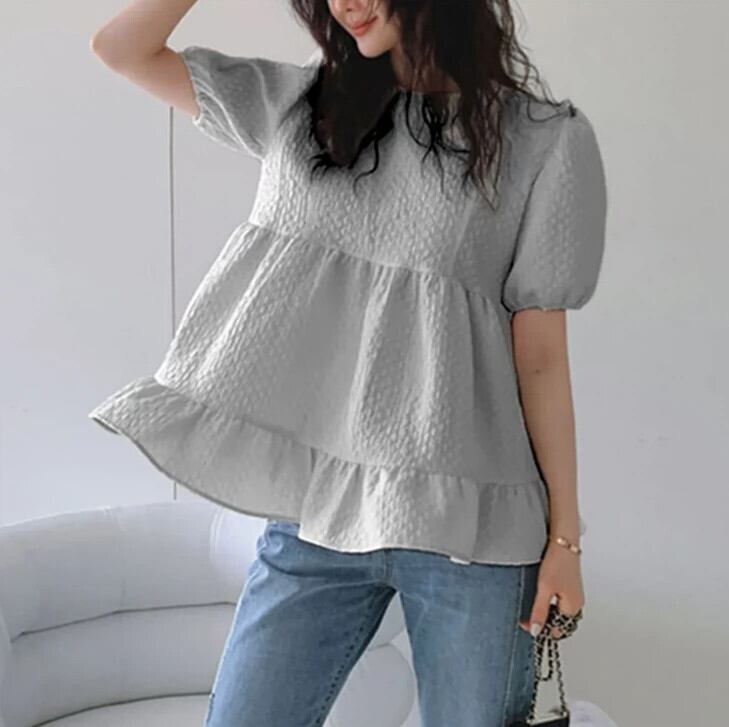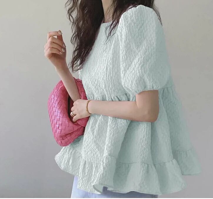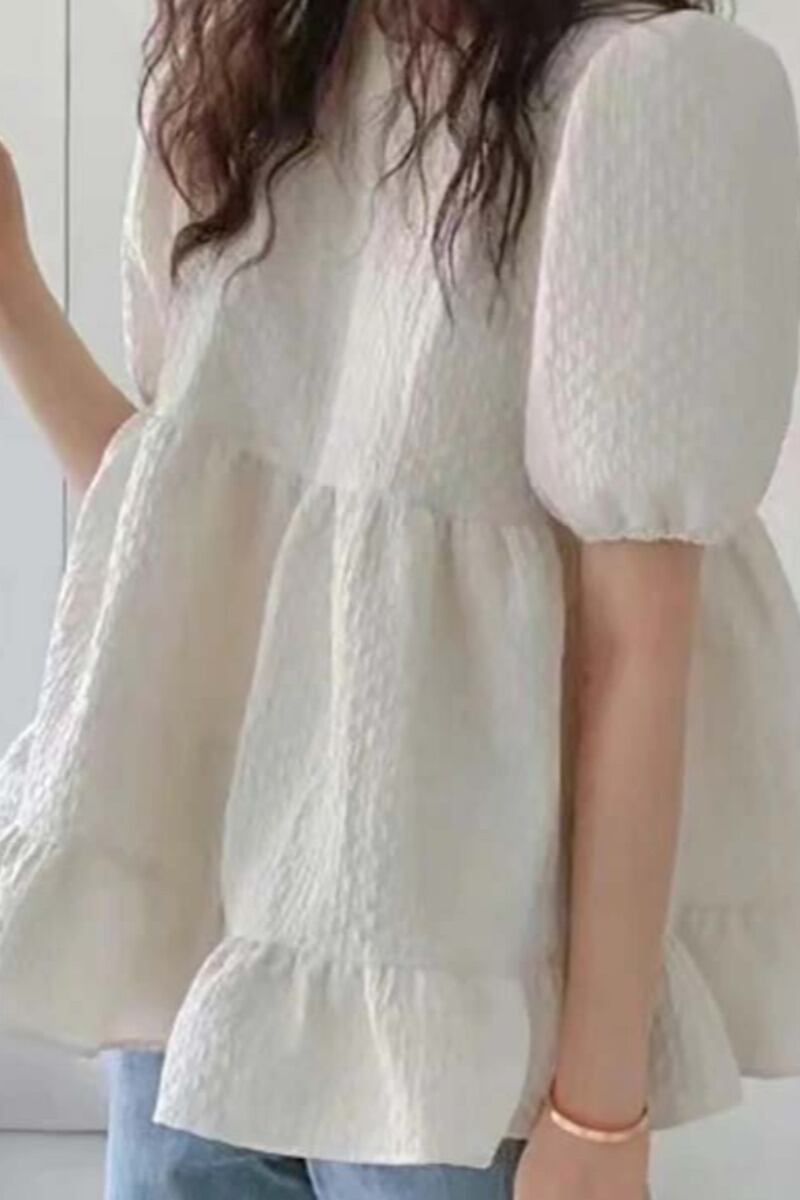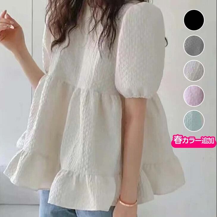 パフスリーブトップ女性の夏のフリルドールシャツ甘いルーズ半袖シャツ気質スリムカバーお腹カバー肉 大人ガーリー スウィート キュート カジュアル サマー 夏物 cat8725060058