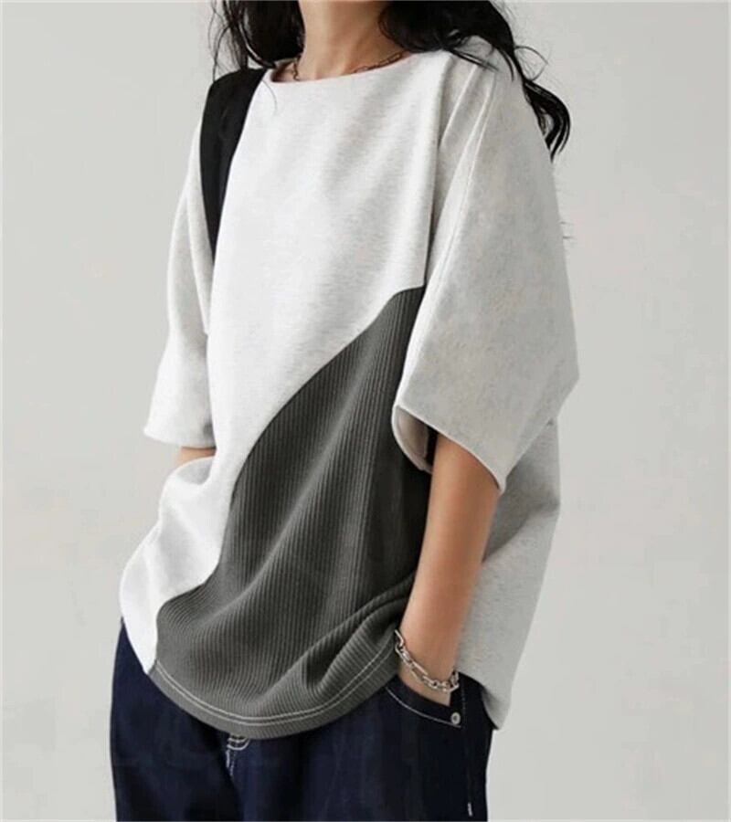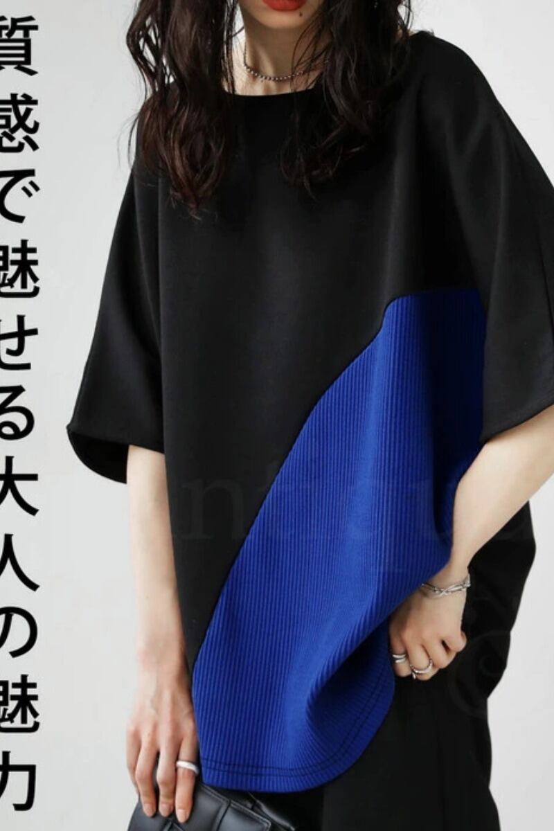 アマゾン越境 ese 夏新作婦人服バットスリーブカラーマッチングラウンドネック Tシャツコントラストカラースプライシングトップレディースファッション サマー 夏物 Oネック cat870298064579