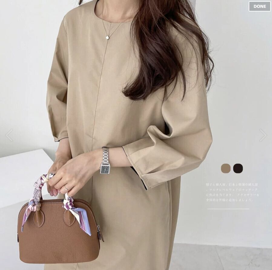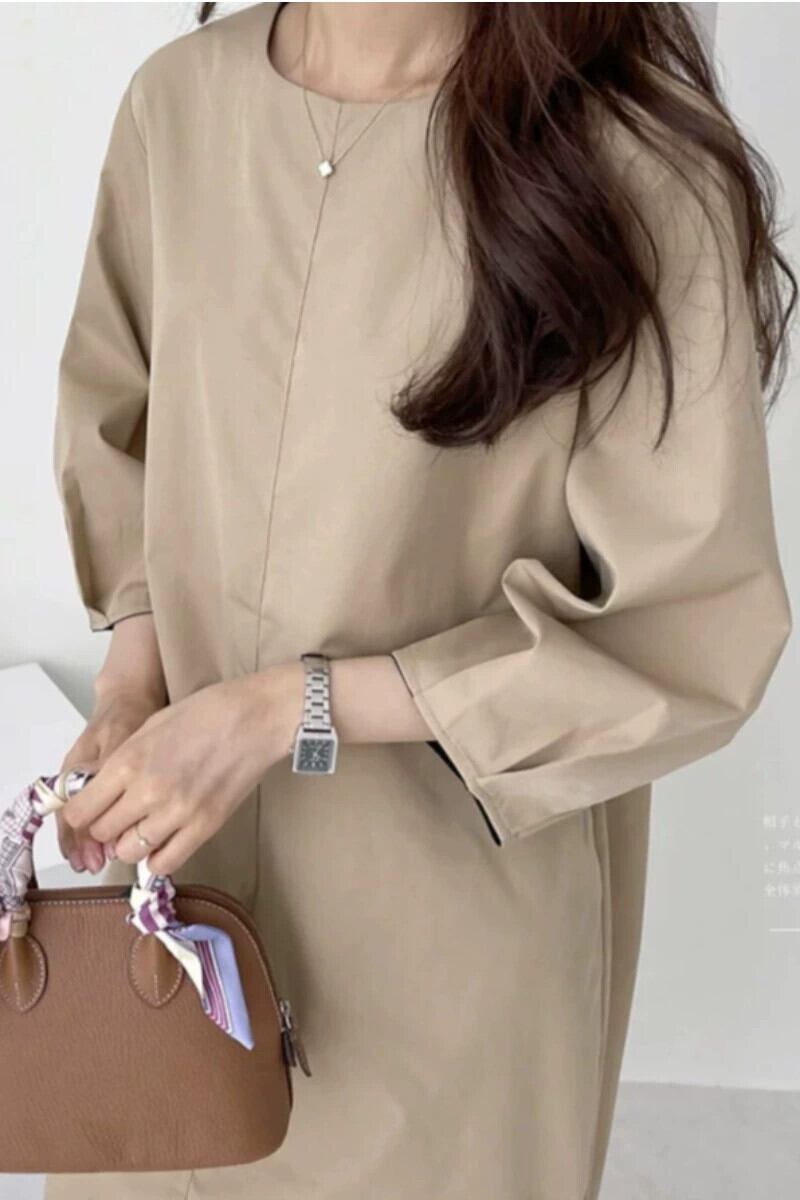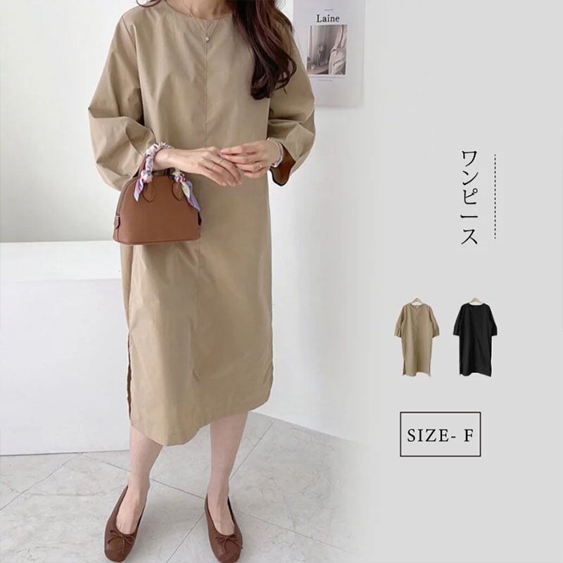インス風優しいエセとラウンドネック8分袖スリット入りゆったりスリムワンピース Oネック cat898853333479