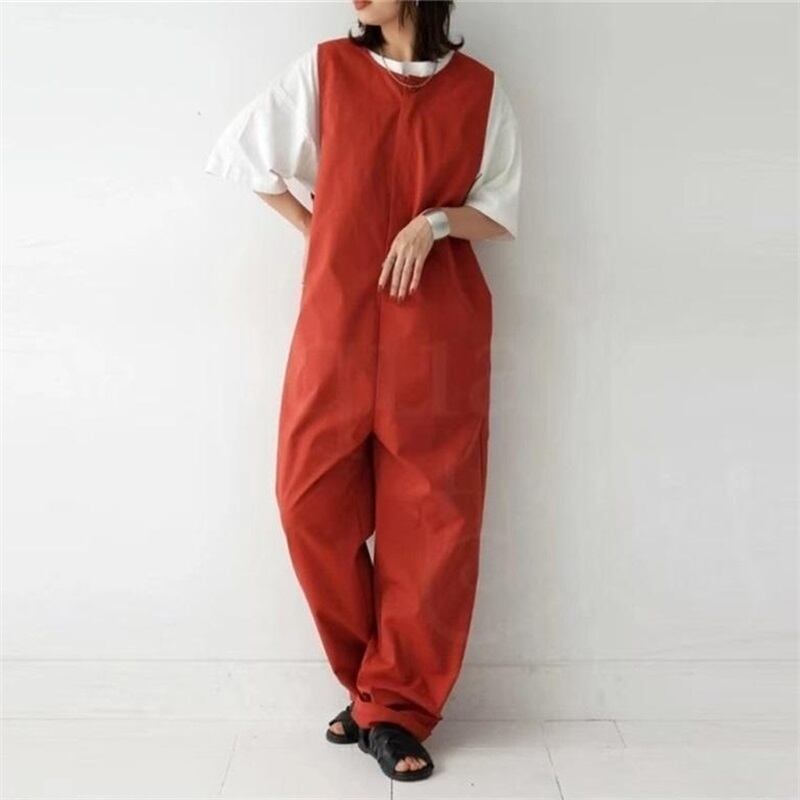 2023 夏の新作婦人服、フロントジッパー、サイドポケット、スリムフィット、ノースリーブ無地オーバーオール サマー 夏物 ソリッドカラー cat873054258414