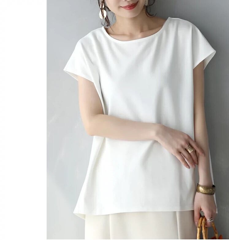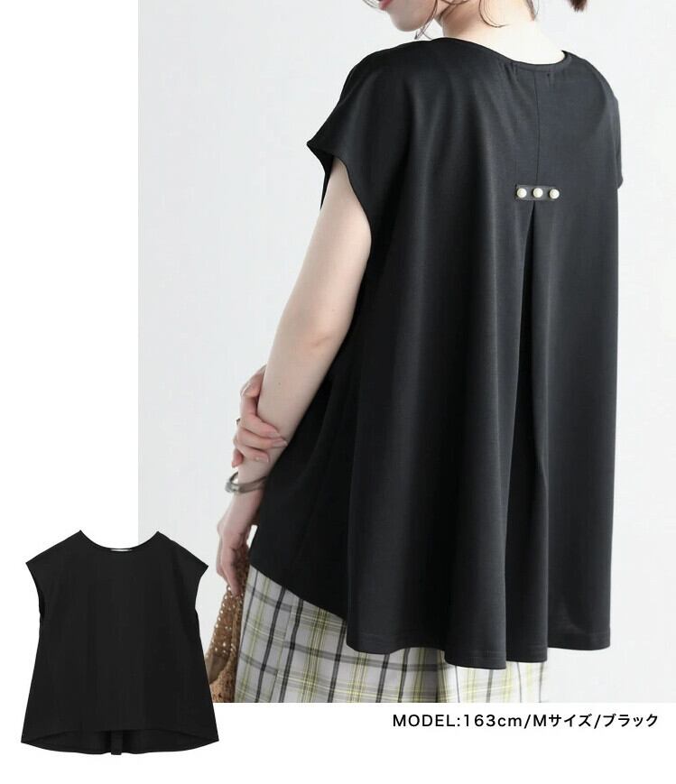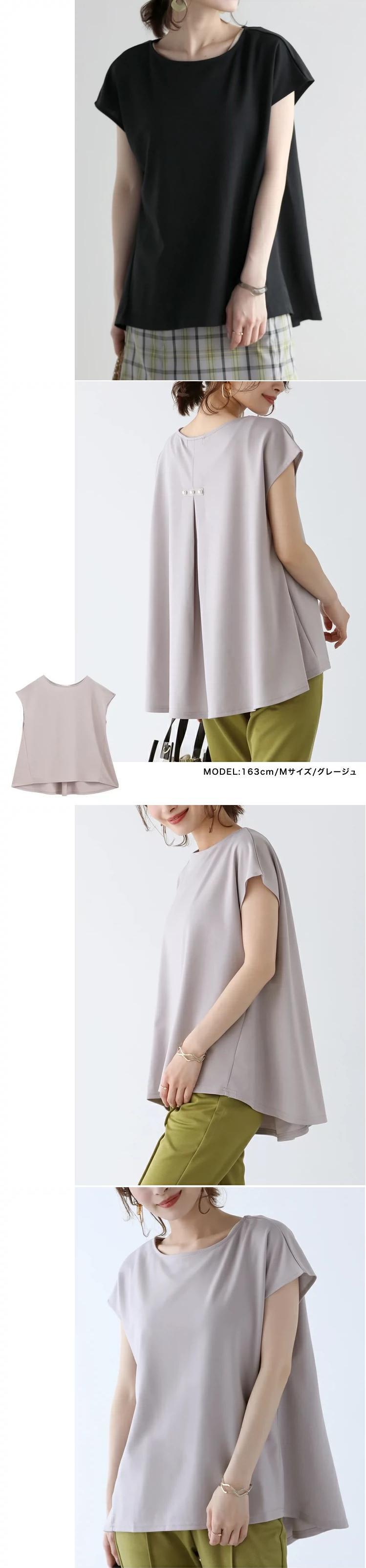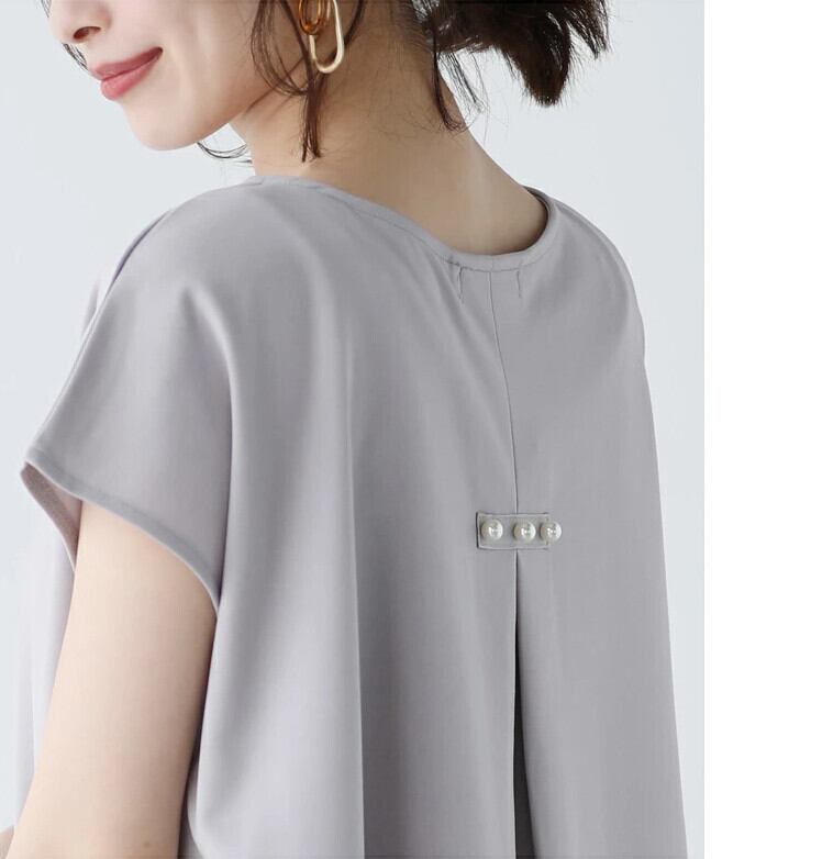2023 新しい ese スタイルバックスリット蓮の葉バックビーズシャツ女性の夏のラウンドネックノースリーブトップ半袖 ショート ハーフスリーブ サマー 夏物 Oネック cat859253306206