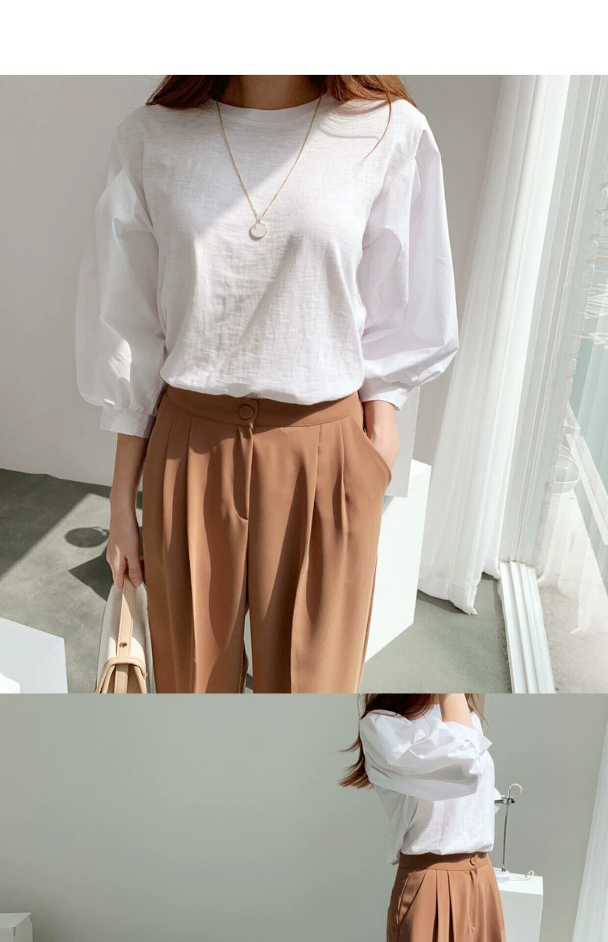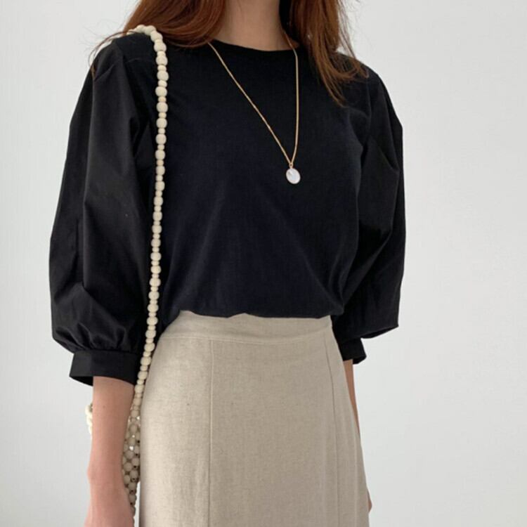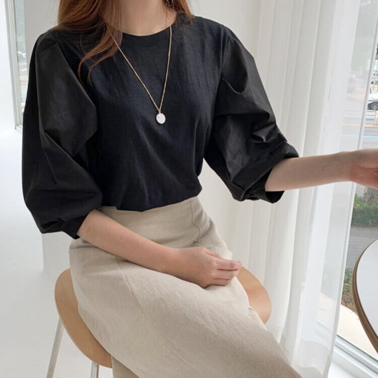 ランタンスリーブ Tシャツ レディース 春夏新作 ゆったり 大きいサイズ 薄手 ラウンドネック 七分袖 ニッチデザイン コットン トップス 大きめサイズ スプリング 春物 サマー 夏物 Oネック cat830804134605