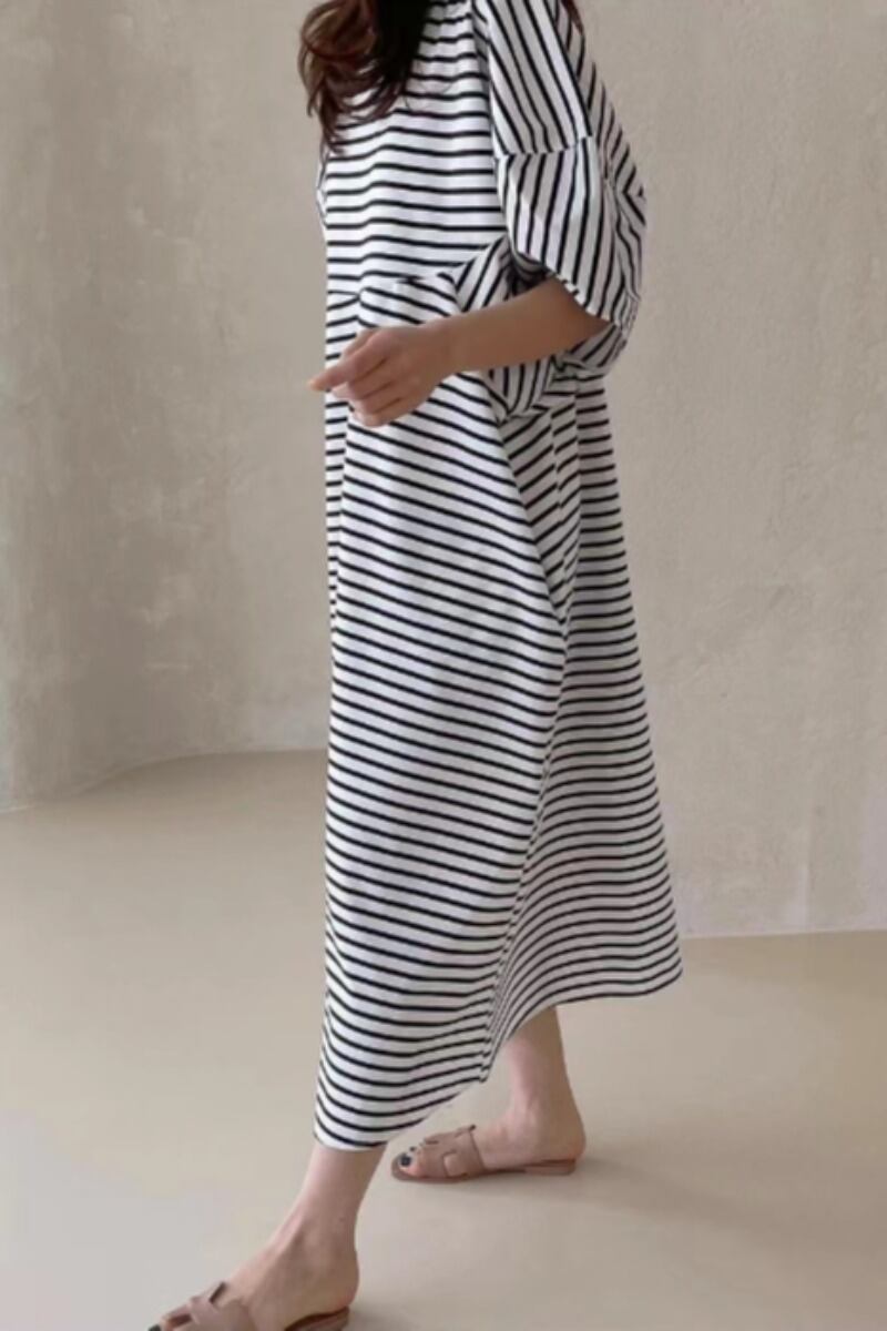2023春 ストライプ半袖ゆったりワンピース スプリング 春物 cat894290925739