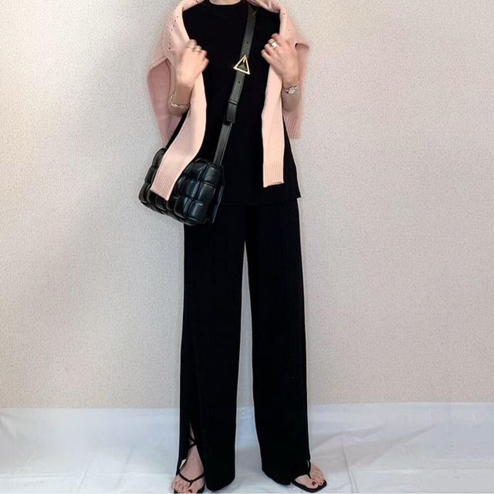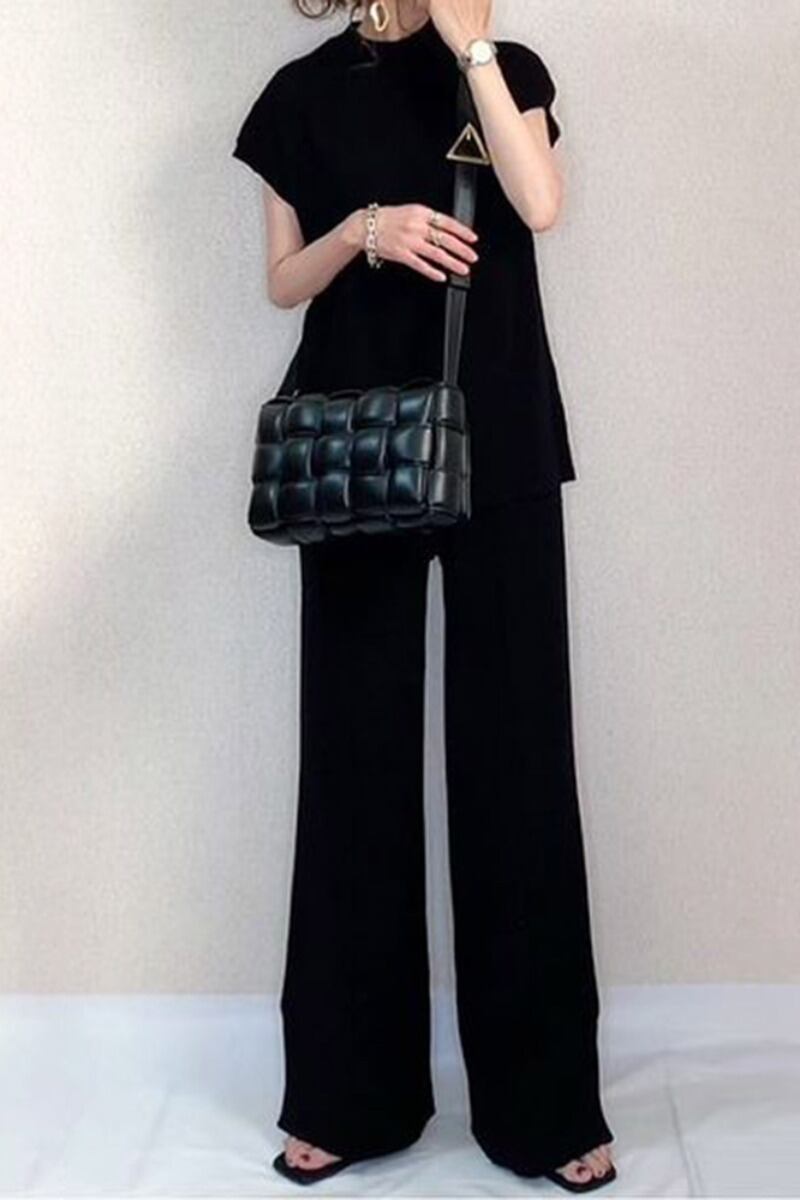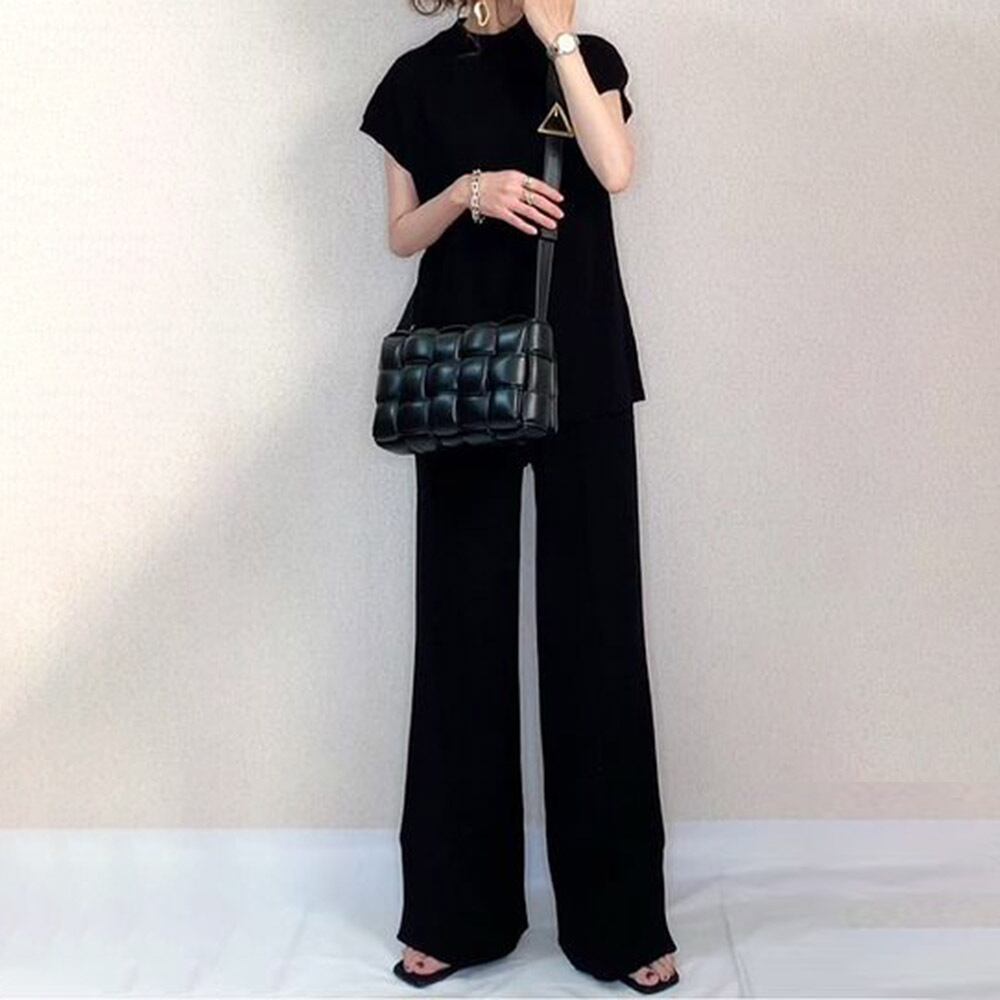 スポット ese とカジュアルファッションスーツ 2022 夏の新無地 2 点セットサイドスリットパンツとニット T シャツ サマー 夏物 Tシャツ ソリッドカラー cat813559386679
