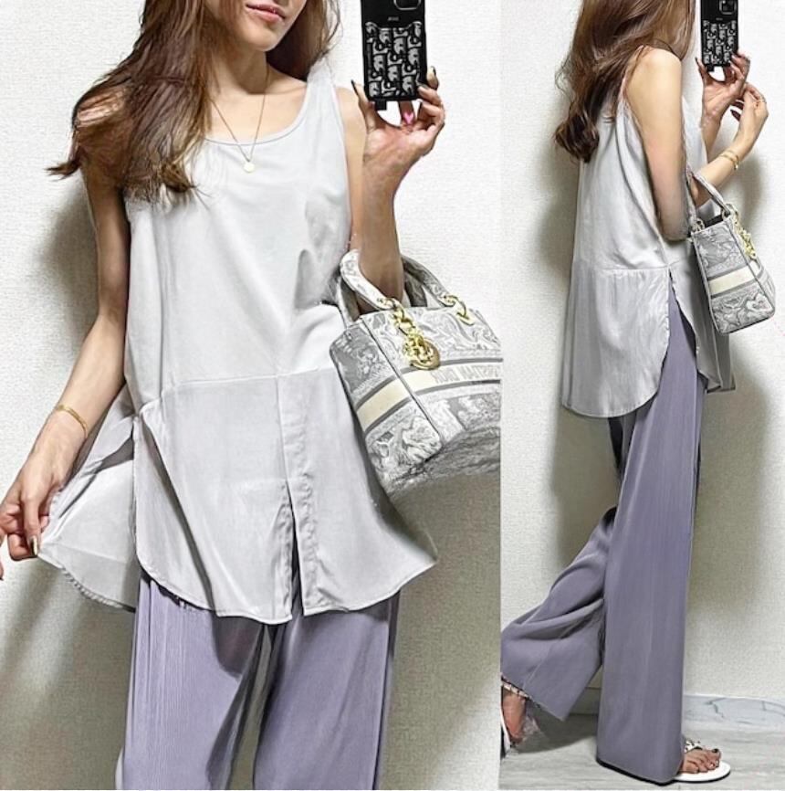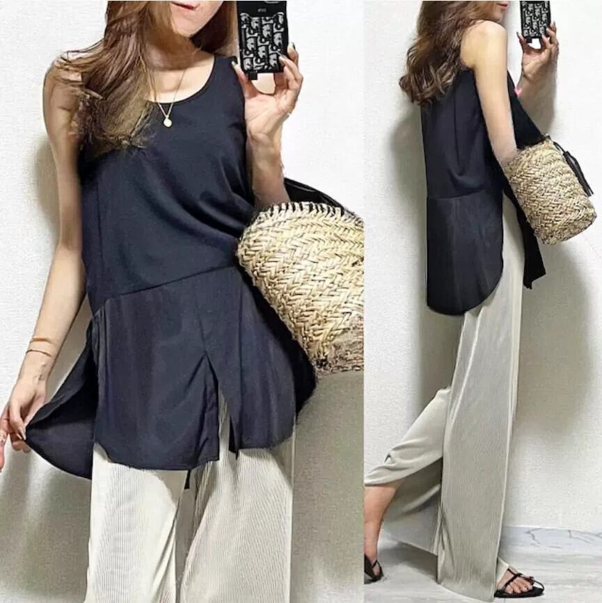 クロスボーダー夏のシンプルなラウンドネックのスプライシングトップス、両サイドにスリットが入ったノースリーブのロングトップ、トレンディ サマー 夏物 Oネック cat850984570098