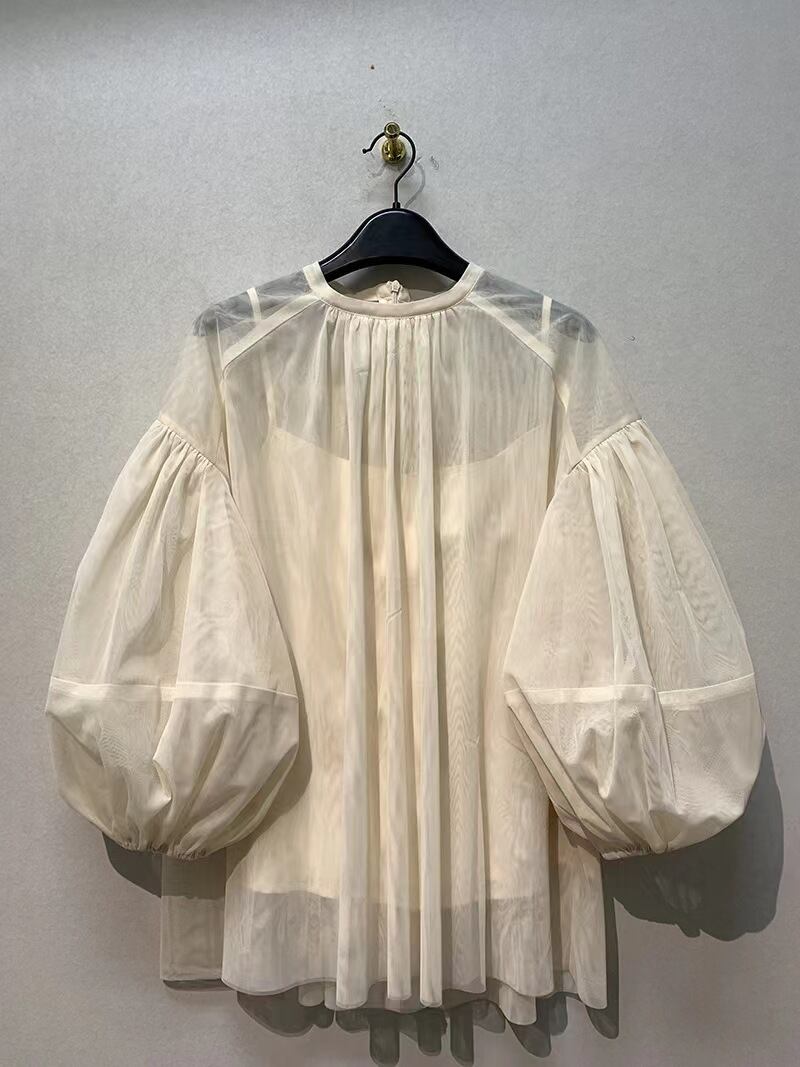 クロスボーダーアマゾンレトロトレンドメッシュルーズシルエットデザインセンスシャツサスペンダー付き2点セット cat811524240774