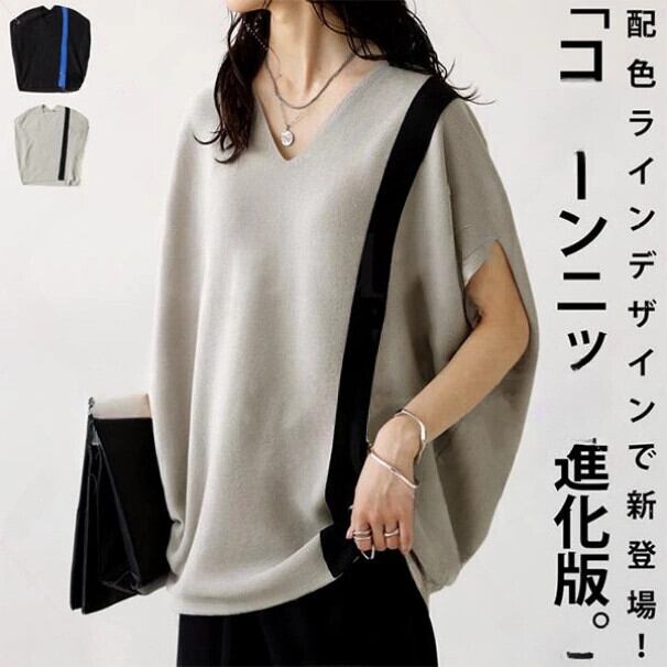 クロスボーダー ese とバージョン ニット セーター 大きいサイズ ルーズ V ネック ニット半袖トップ レディース 夏オールマッチ t シャツ 大きめサイズ サマー 夏物 Vネック Tシャツ cat873586429987