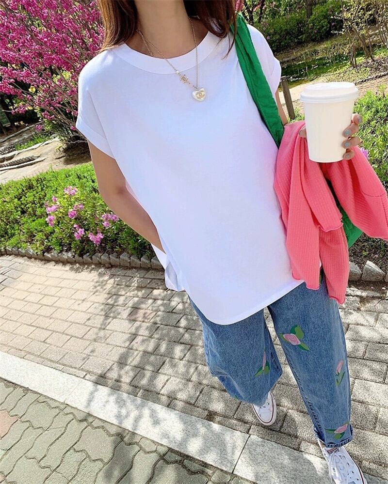 2023 ese 夏の新婦人服ピュアコットン無地オールマッチルーズスリム Tシャツ半袖ワイドエッジトップ サマー 夏物 cat844726120241