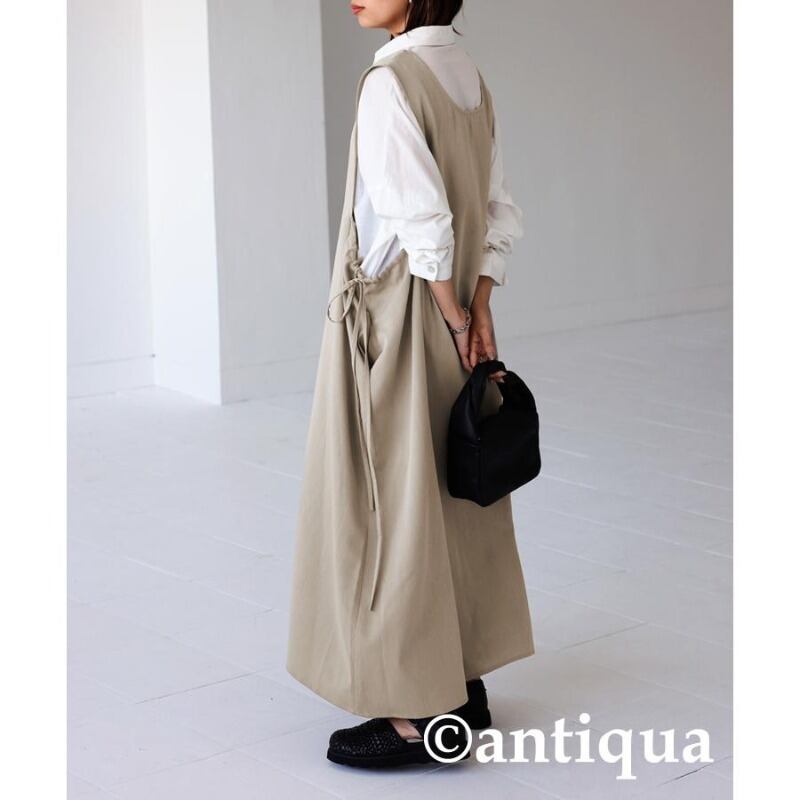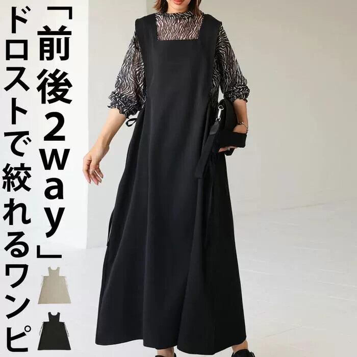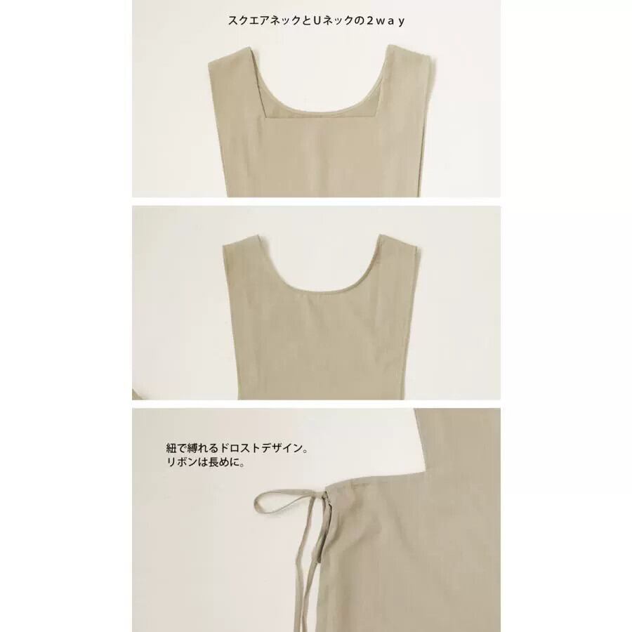 エーゼスタイルスクエアカラースリムウエストウエストタイルーズミッドレングスサスペンダードレス スクウェア cat827248620032