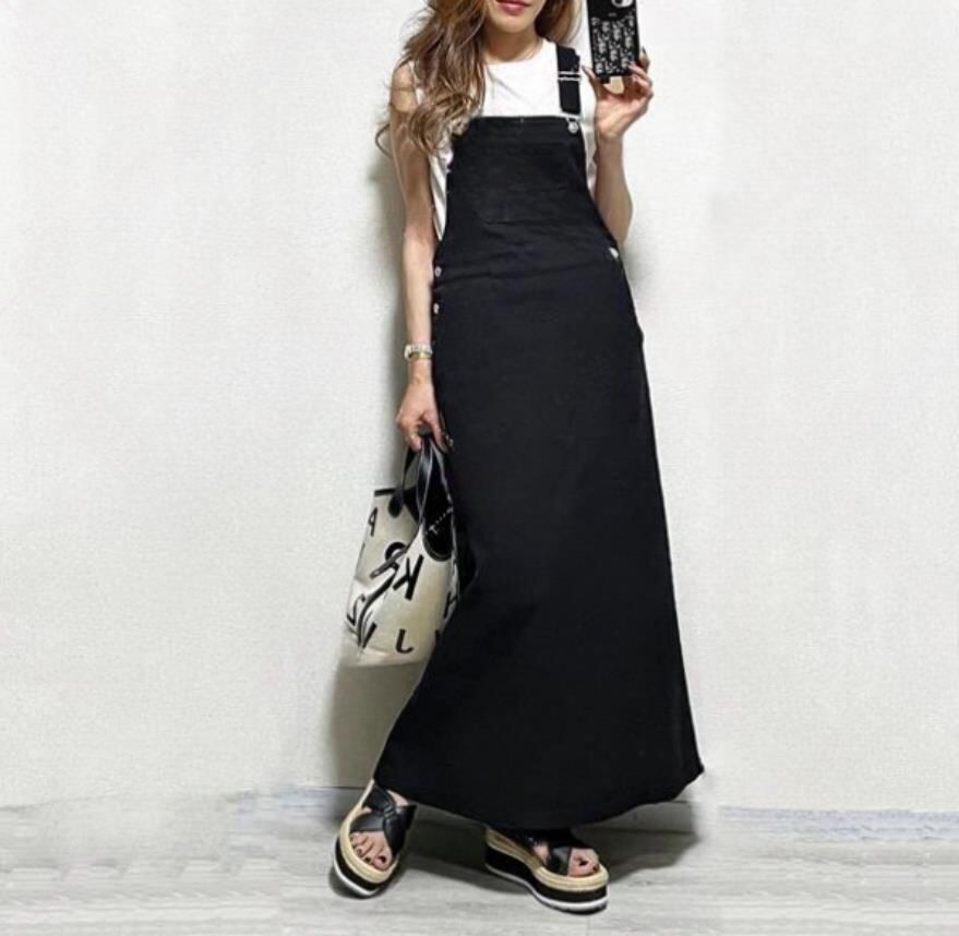 クロスボーダー ese 2023 夏の新デニムルーズストレートチューブスリム黒サスペンダードレスストラップロングスカート女性 ブラック サマー 夏物 cat849009933800