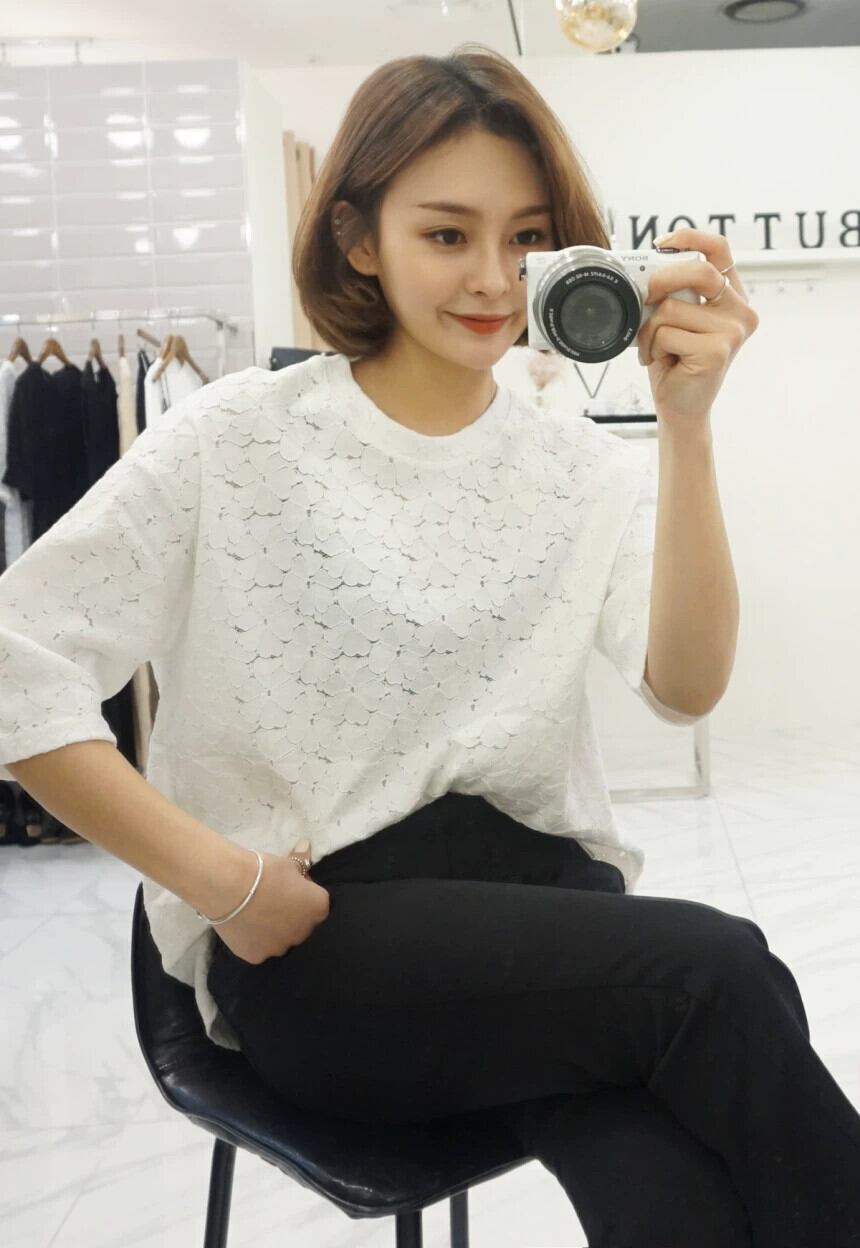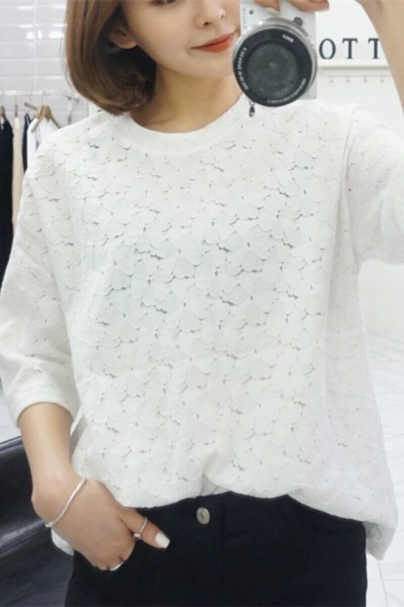 2023 ese 夏新婦人服パターンレースパターン半袖ラウンドネック Tシャツトップスオールマッチボトリングシャツ サマー 夏物 Oネック cat841203370290